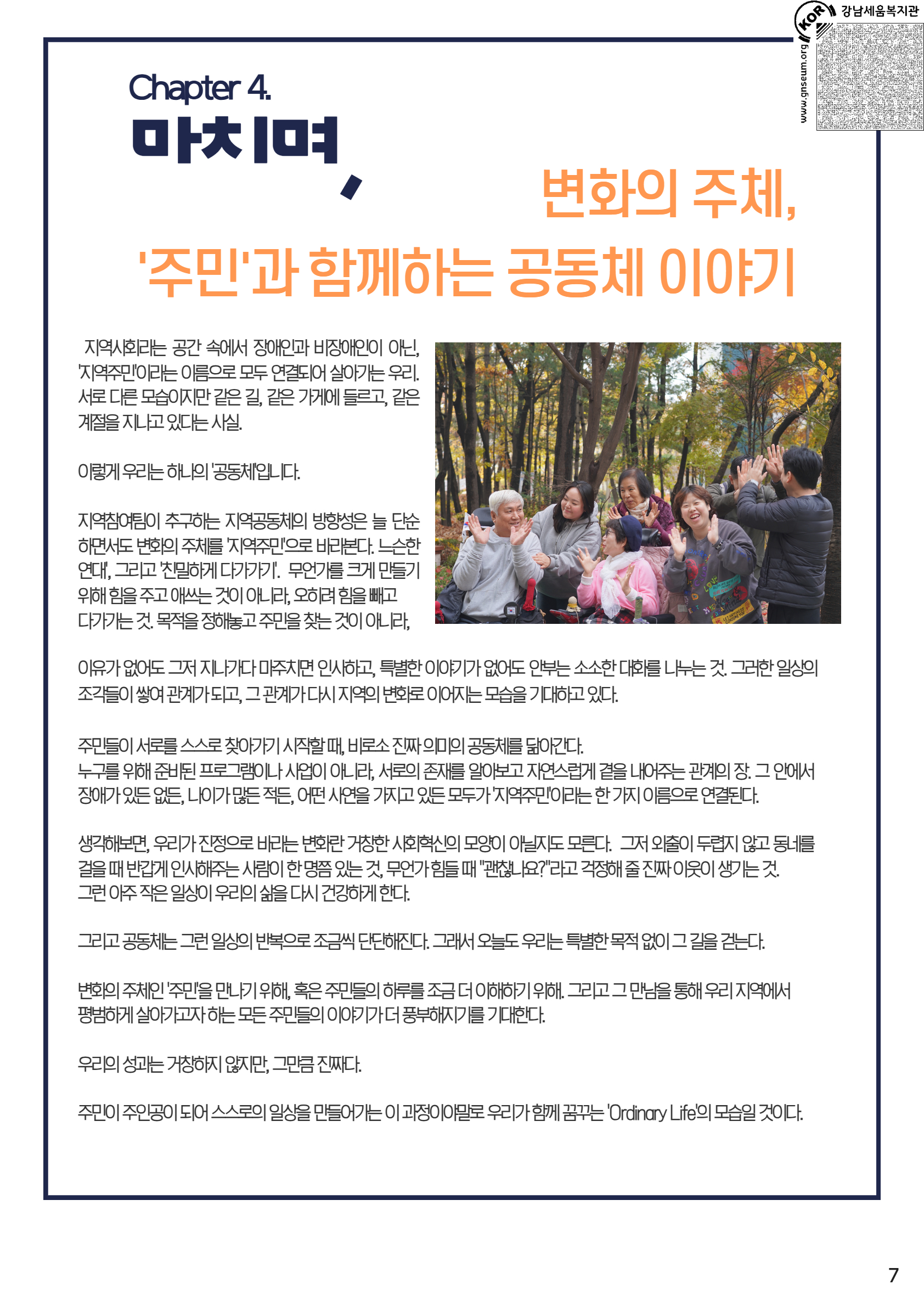 Chapter4. 마치며, 변화의 주체, ‘주민’과 함께하는 공동체 이야기