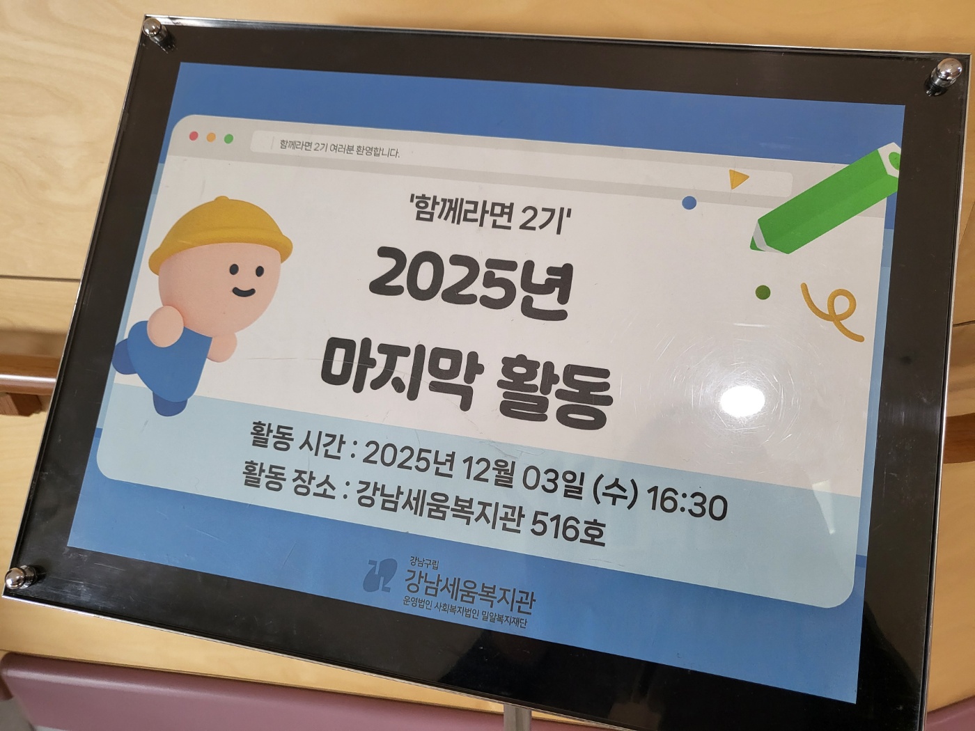 - 장소 : 강남세움복지관 5층 516호