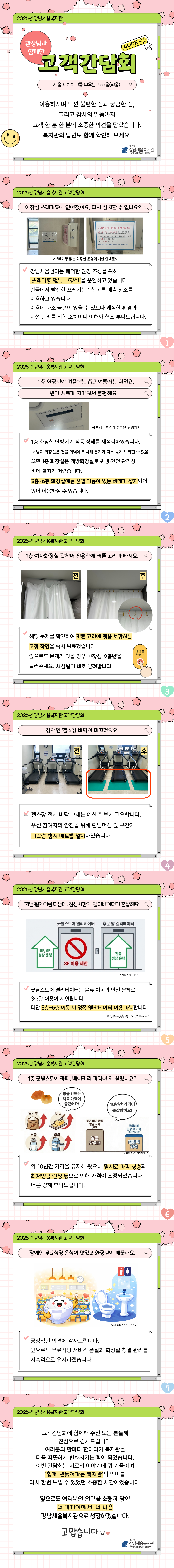 고객 한 분 한 분의 소중한 의견을 담았습니다. 복지관의 답변도 함께 확인해 보세요.