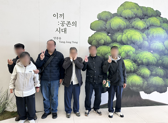 우리 중장년 발달장애인 참여자들은 화창한 봄 날씨를 기념하여 인근에 더샵갤러리에 다녀왔습니다. 이끼:공존의 시대라는 전시회와, 음악을 관람하고 컵 받침의 배경이 되는 그림을 그리고 글을 적어 보는 등 활동을 즐겼습니다.