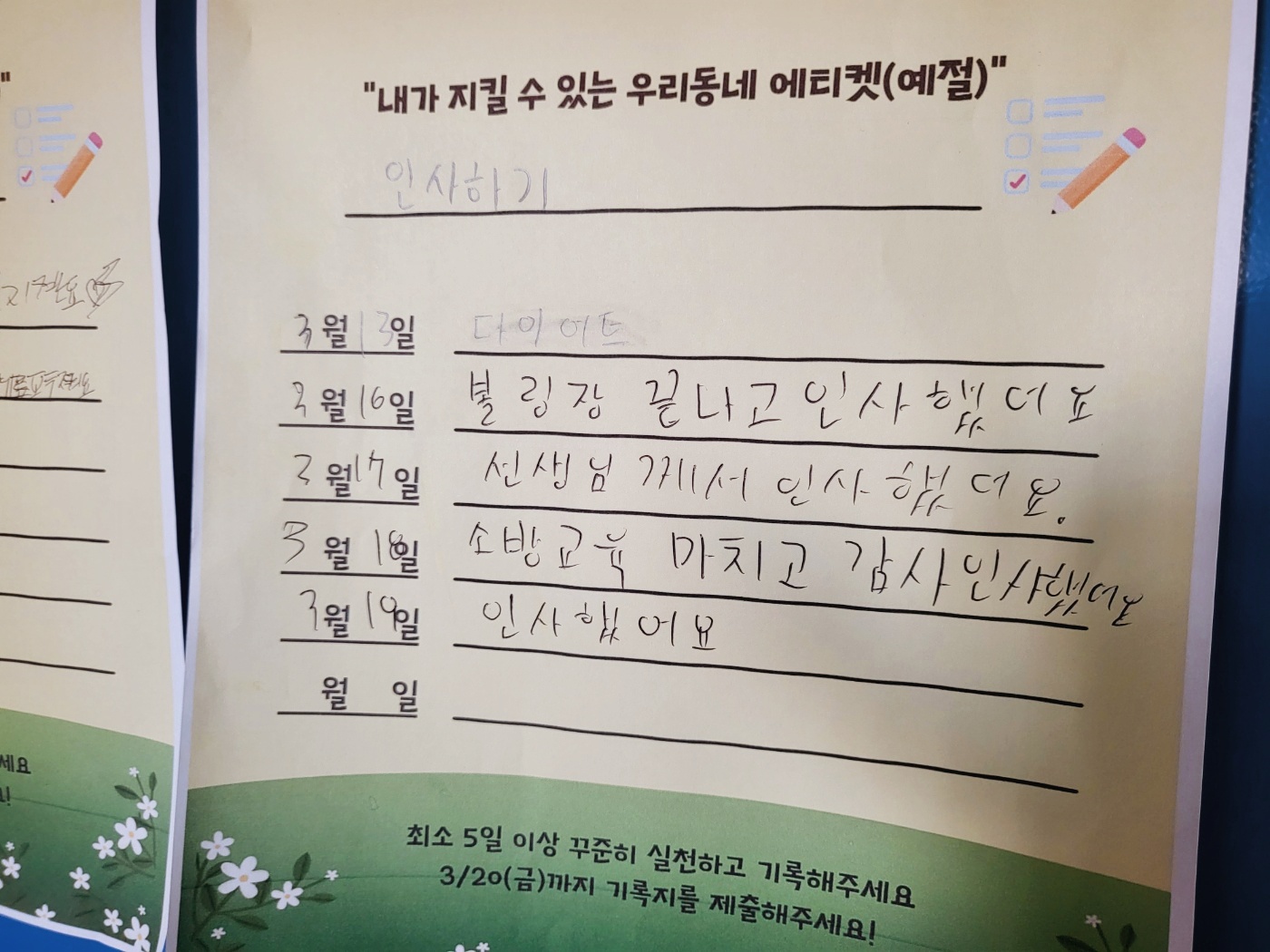 ▲사진1~2. 주민참여챌린지 실천 기록 작성 모습