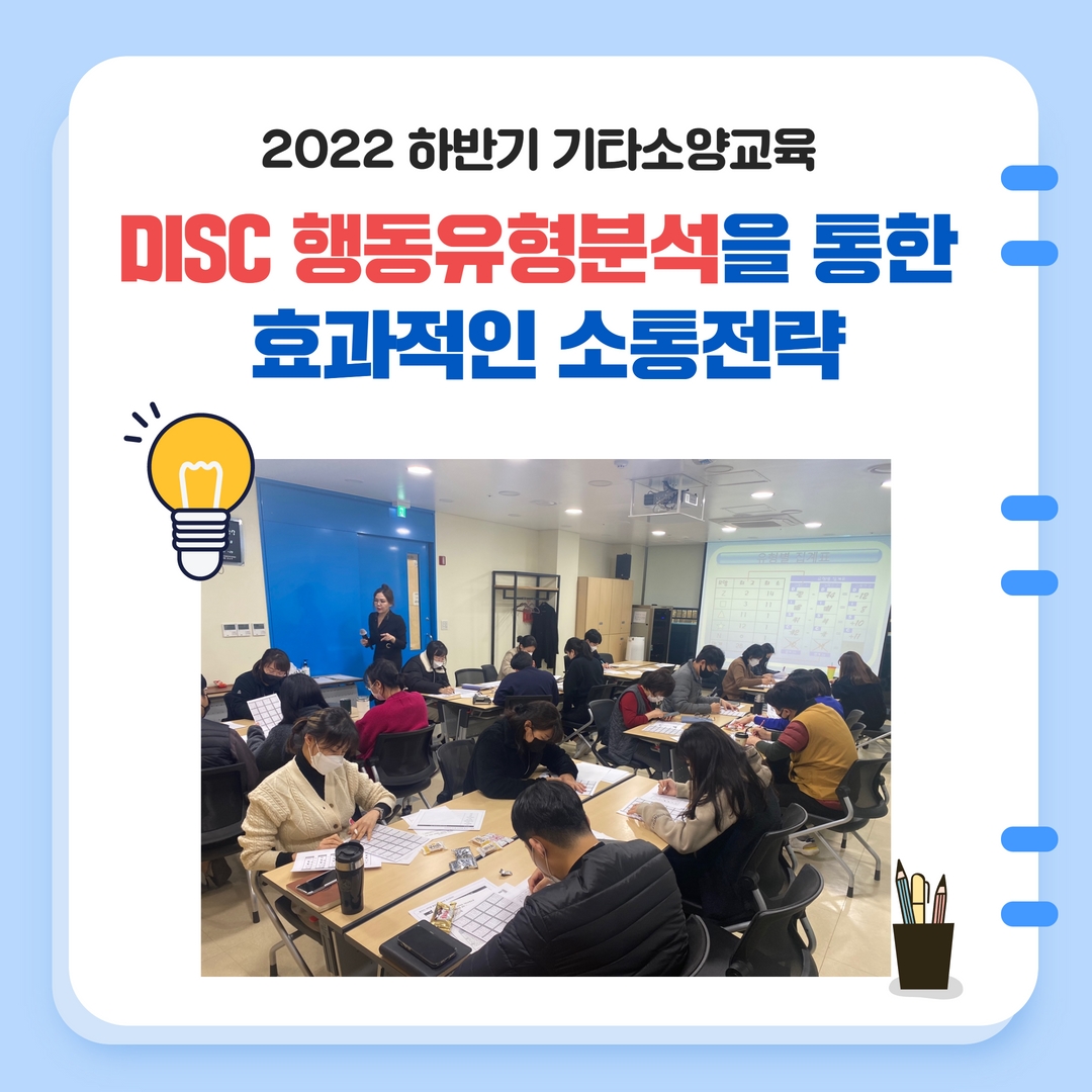 - 사업명 : 2022년 하반기 기타소양교육(DISC 행동유형분석을 통한 효과적인 소통전략)