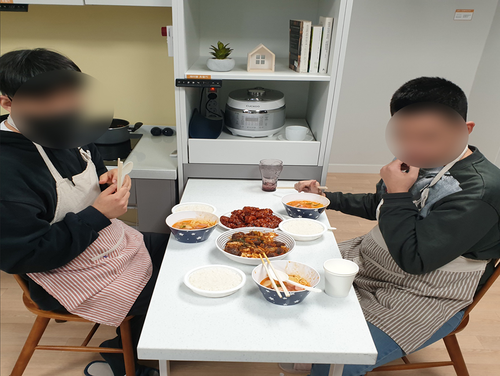 - 활동 내용 : 사회참여팀은 강남세움아카데미 청년반 참여자들과 함께 스마트홈에서 자립체험 활동하였습니다. 이마트에서 본인이 좋아하는 밀키트 메뉴와 음료를 구매하여 직접 조리해 저녁 식사를 하는 활동을 통해 추후, 보호자의 지원 없이 간편한 조리로 식사할 수 있는 연습을 하였습니다. 식사 후, 설거지, 분리배출 등 정리까지 참여자들이 직접 하며 모든 참여자가 매우 즐거웠다고 답변하는 등, 즐거운 시간을 보냈습니다.