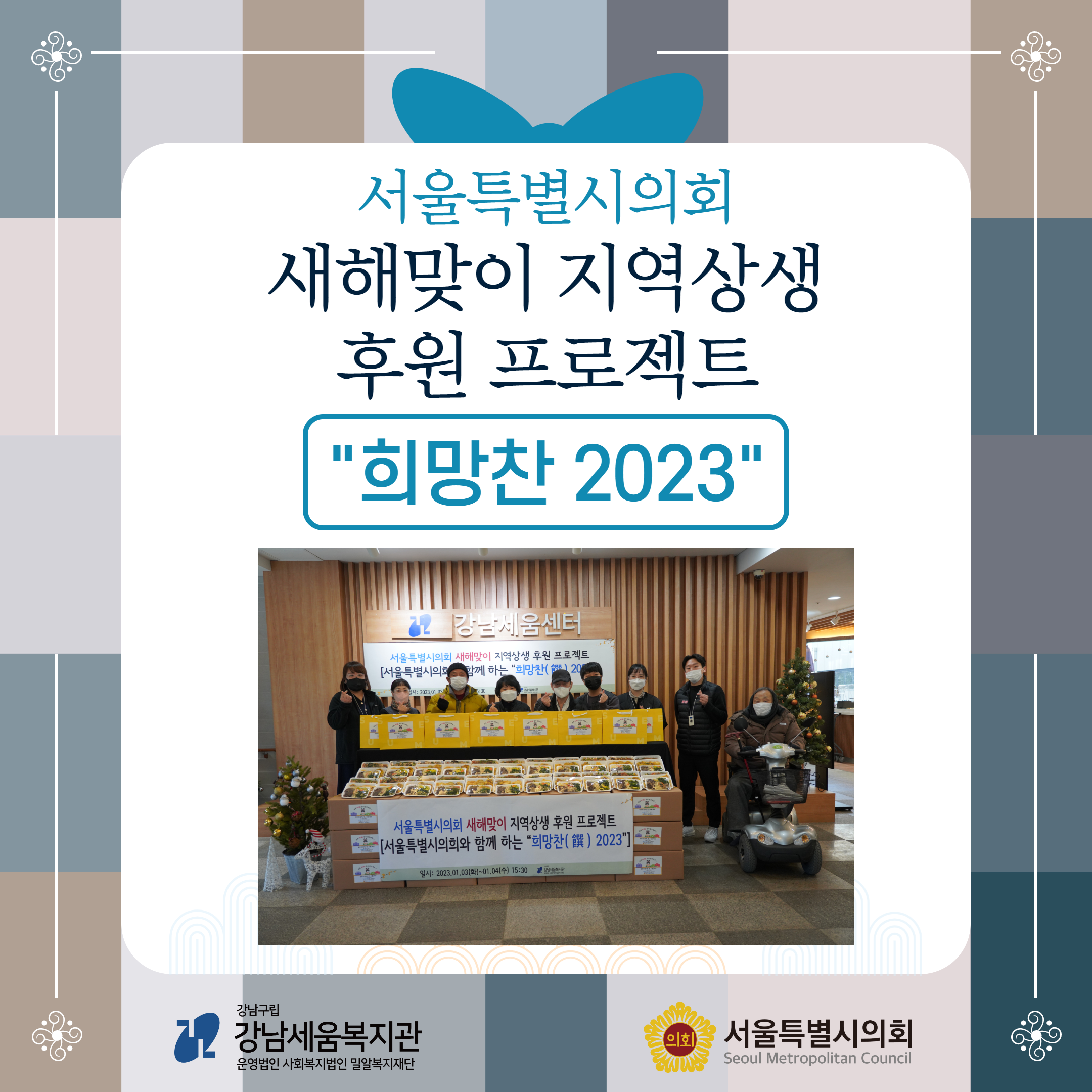 - 사업명 : 서울특별시의회 새해맞이 지역상생 후원 프로젝트 “희망찬(饌) 2023”