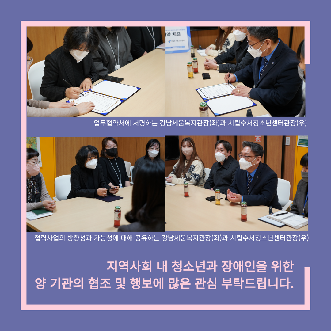 - 사업명 : 시립수서청소년센터와 업무협약 체결