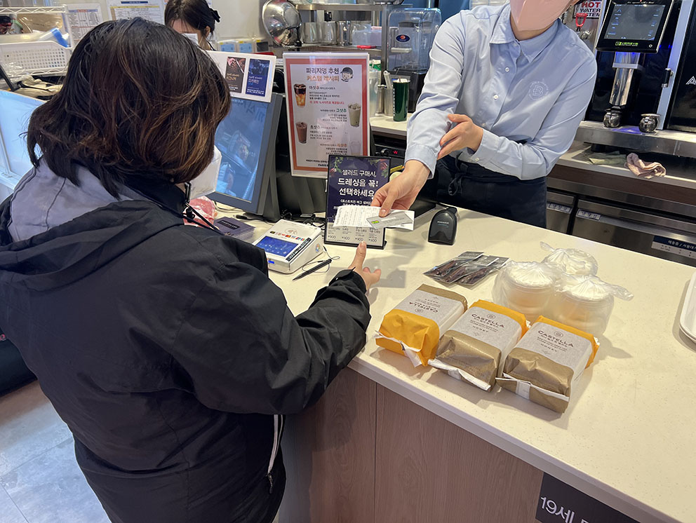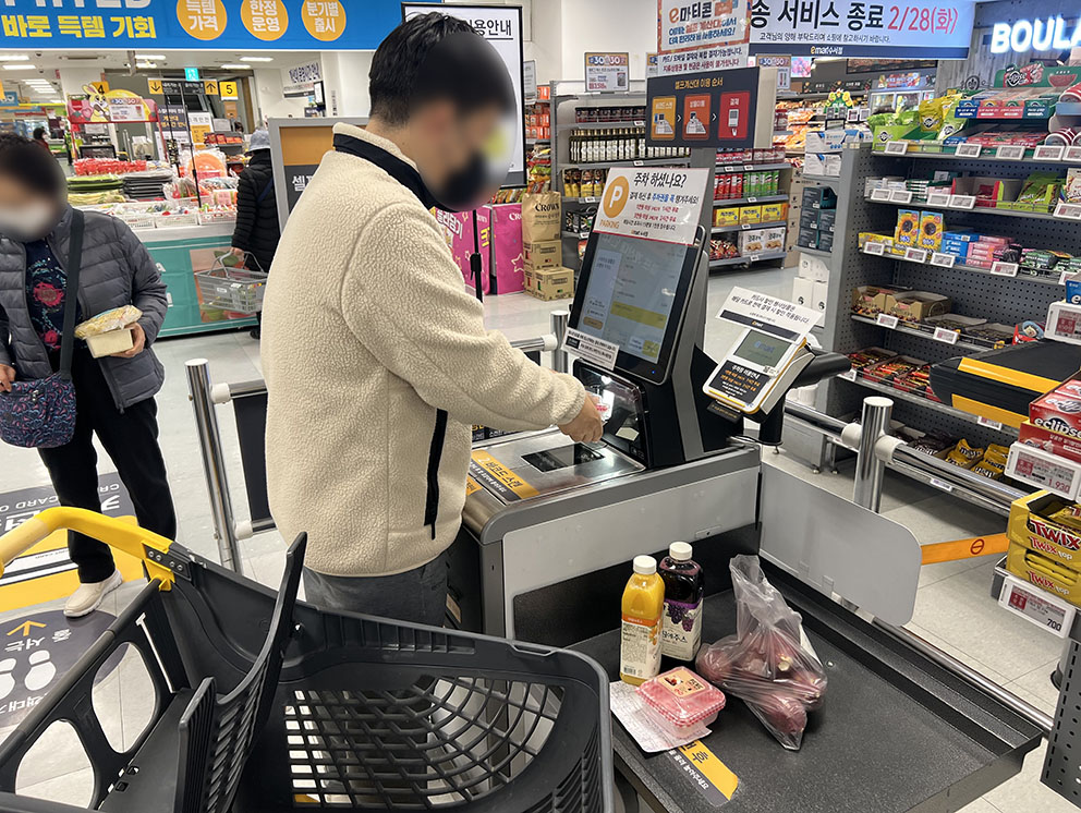 ▶상단 좌측 : 마트 셀프 계산대 이용 실습 사진 / 우측 : 제과점 계산 이용 실습 사진