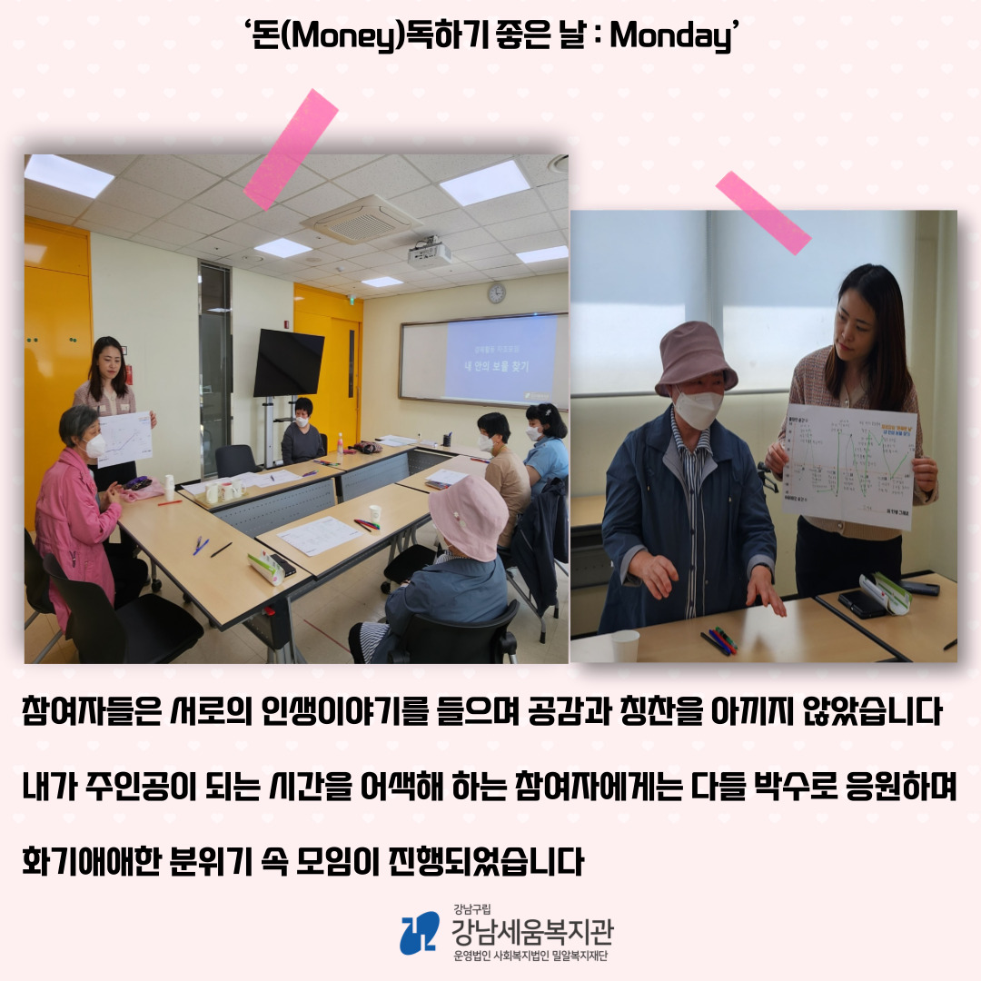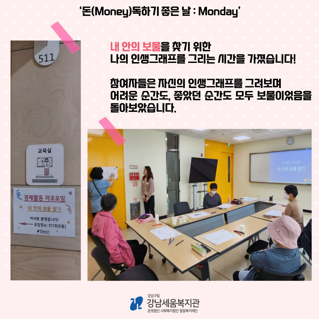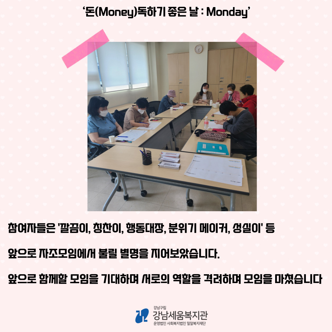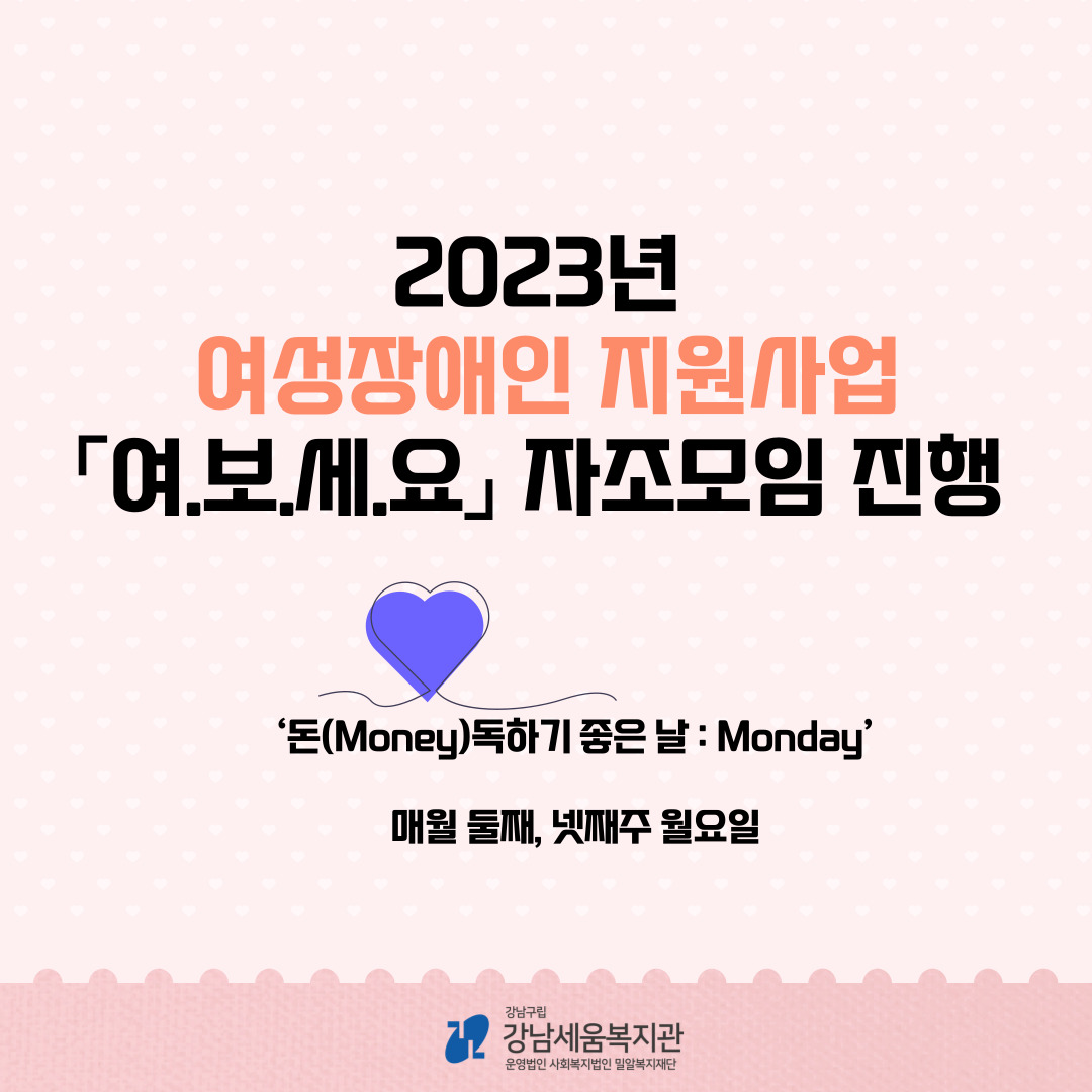 - 사업명: 2023년 지역참여팀 여성장애인 지원사업 「여.보.세.요」 경제활동 자조모임 ‘돈(Money)독하기 좋은 날 : Monday’ 진행