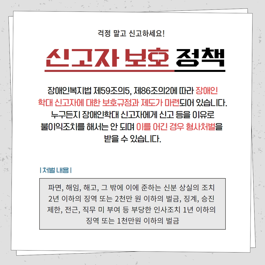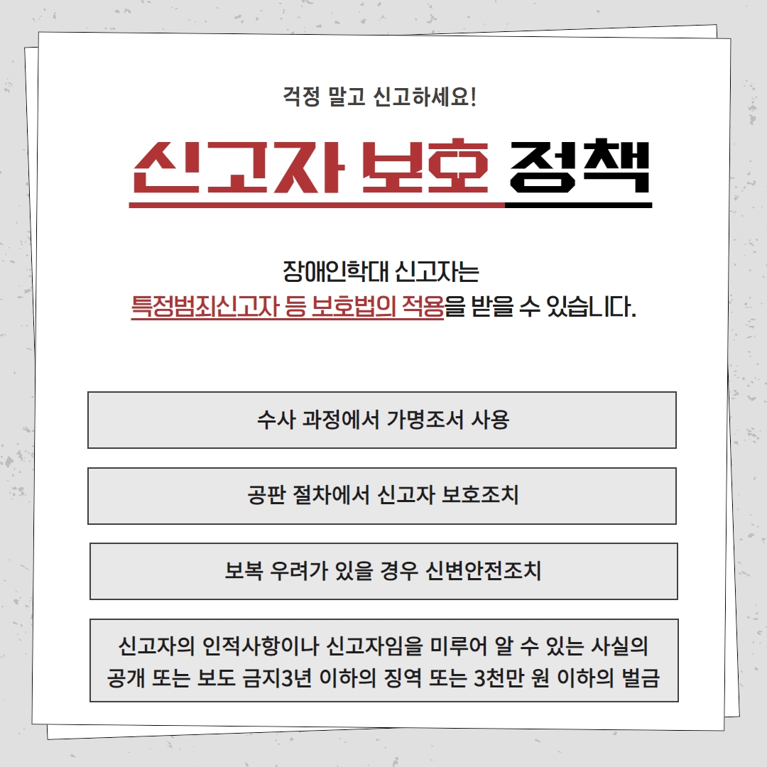 - 걱정 말고 신고하세요! 신고자 보호 정책