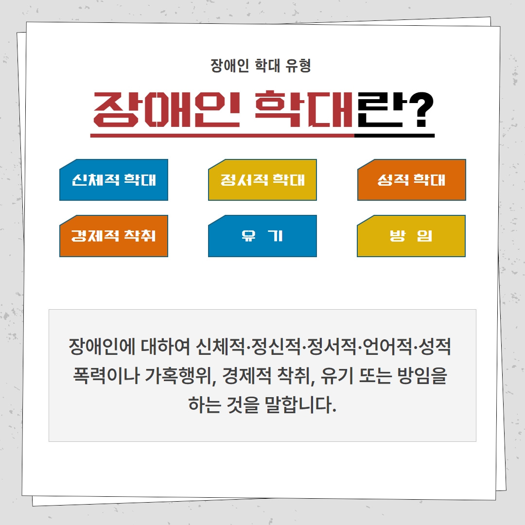 장애인 학대 유형-신체적 학대/정서적 학대/성적 학대/경제적 착취/유기/방임