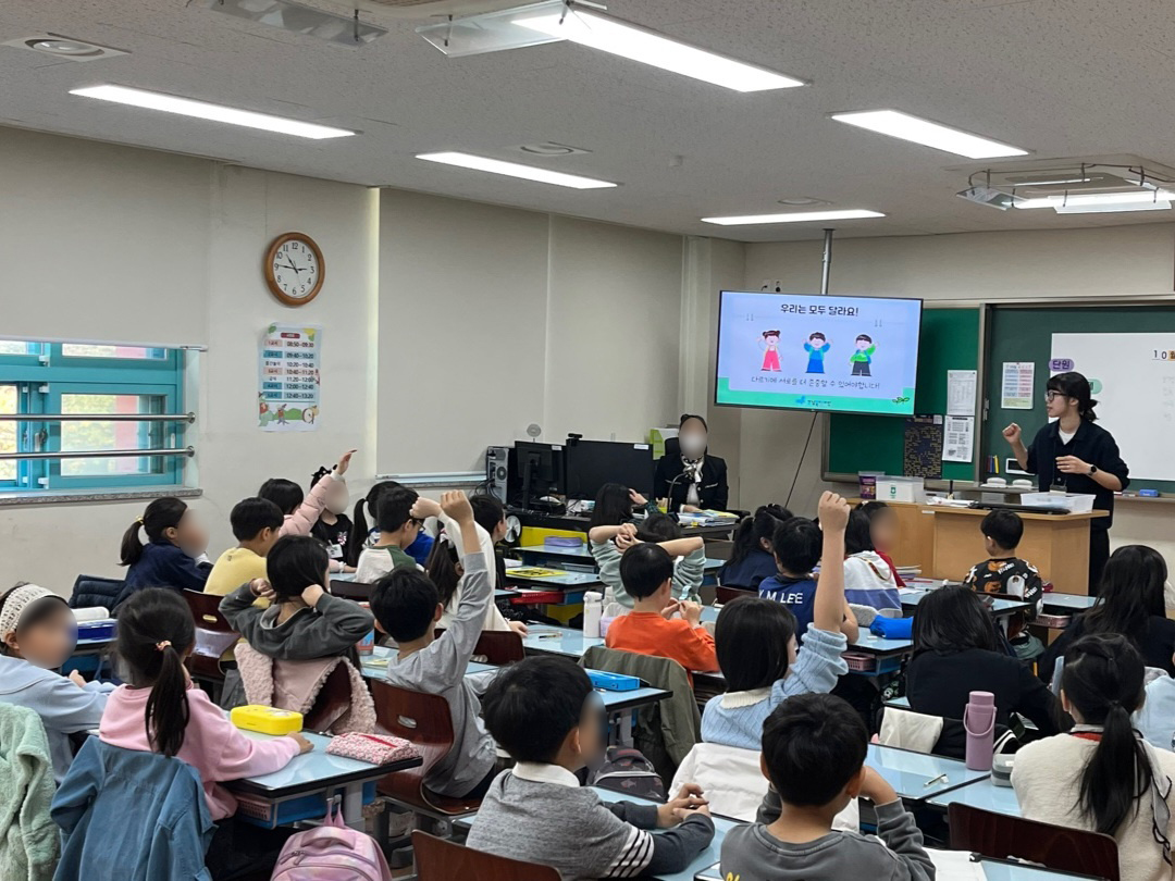 ▲ 사진1~2: 도성초등학교 인식개선교육 진행 모습