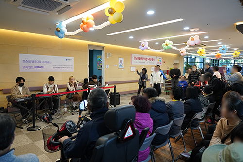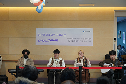 두 번째 이벤트는 11월 7일(목) ‘오아밴드(OHAH)’의 개관 축하 공연이었습니다. 강남구 찾아가는 행복콘서트 연계로 초대된 ‘오아밴드(OHAH)’는 다양한 음악으로 축하 분위기를 더욱 고조시키며 주민들에게 즐거운 시간을 선사했습니다. 관람객은 “공연이 있어 축제 분위기가 난다”라는 공연 소감을 전하였습니다.