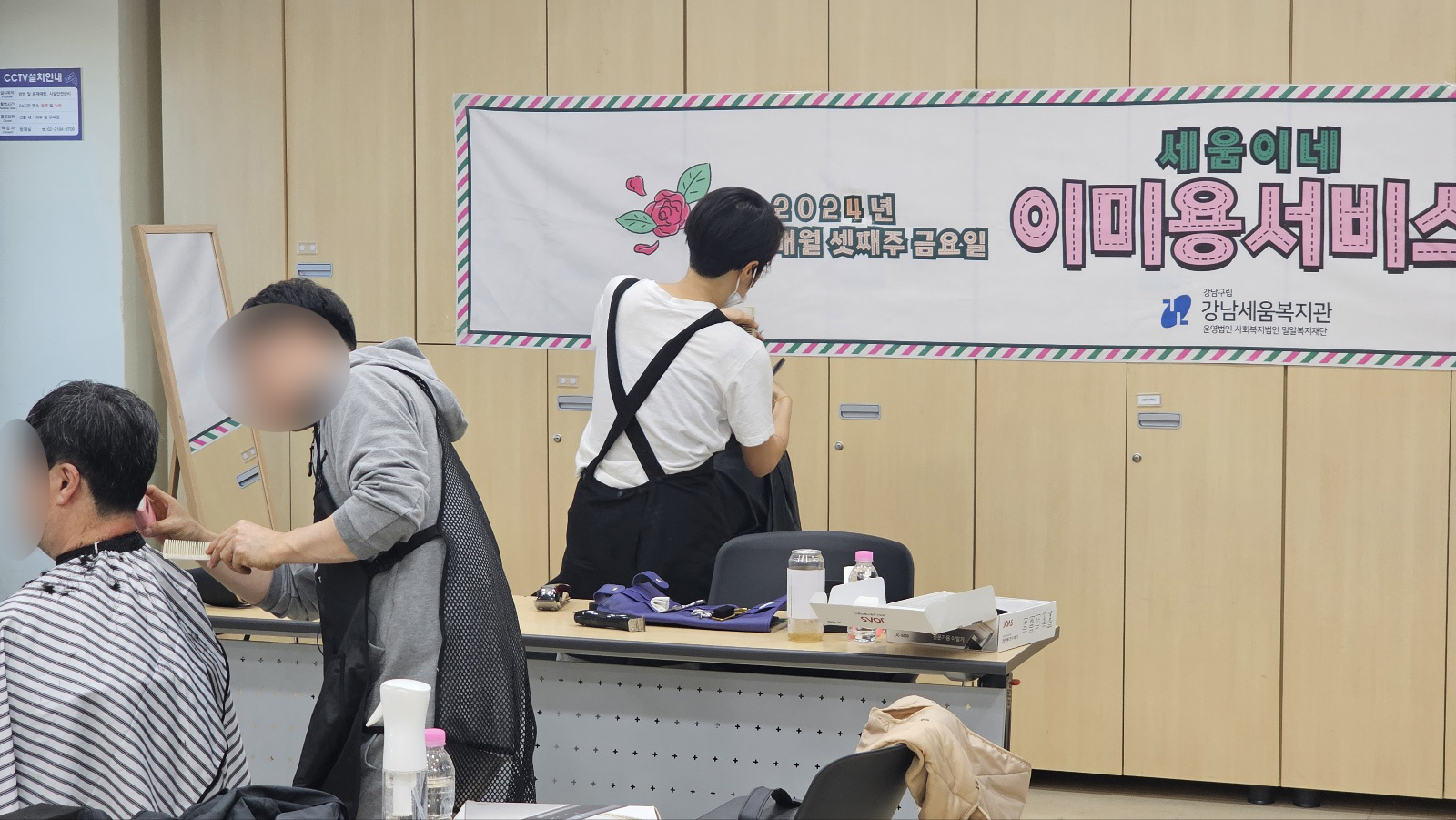 강남세움복지관에서는 11월 15일(금)에 ‘세움이네 이미용서비스’를 진행하였습니다. 선선한 가을을 맞아 참여자들도 깔끔하고 새로운 헤어 변신을 위해 세움이네에 방문하였습니다.