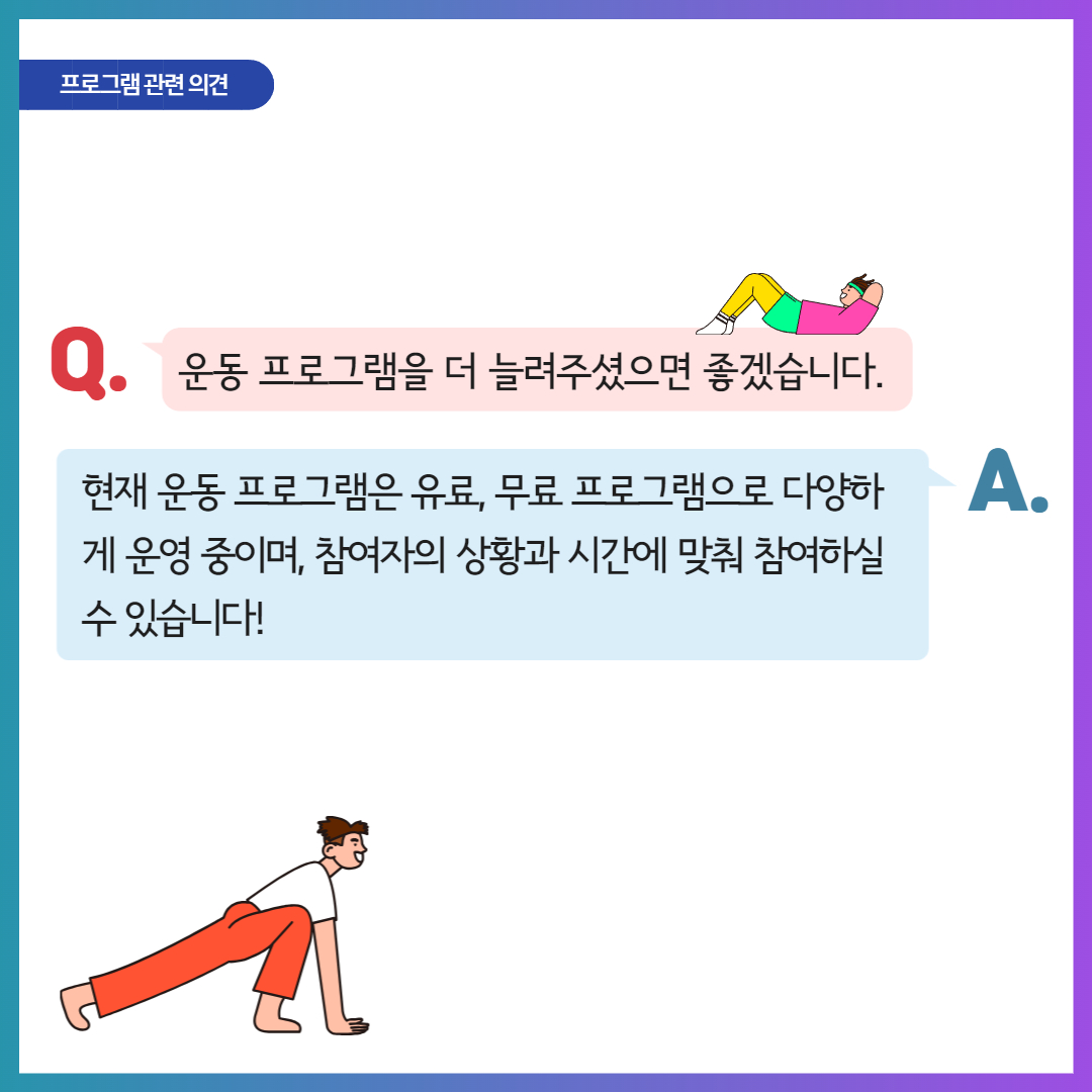(질문) 운동 프로그램을 더 늘려주셨으면 좋겠습니다.