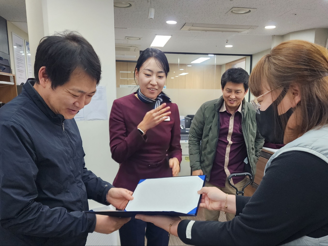 ▲ 후원, 자원봉사자 화분 전달 및 감사장 전달 사진
