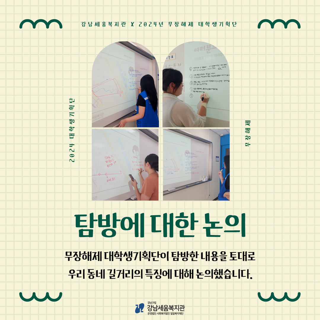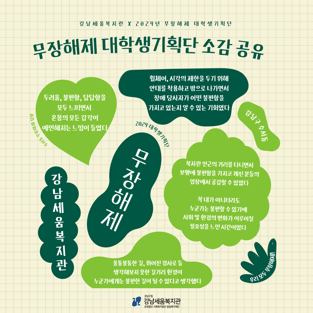 강남세움복지관, 2024년 대학생기획단 우리 모두 무장해제! 무장해제 대학생기획단의 탐방기록