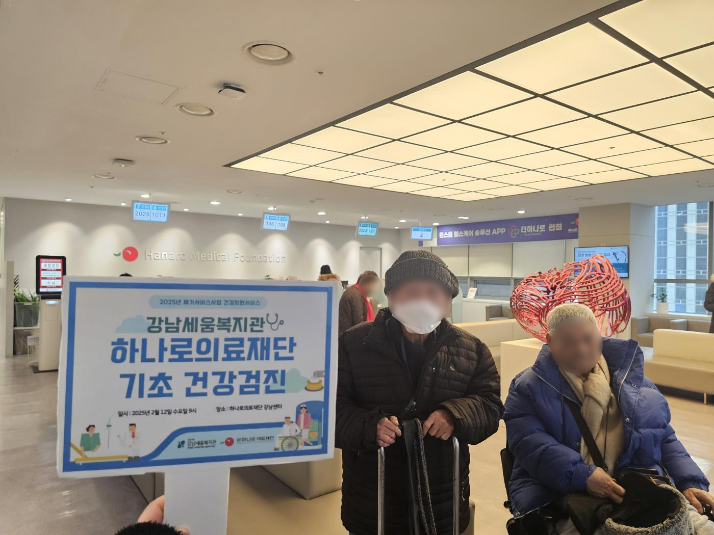 강남세움복지관에서는 2월 12일 수요일 복지 취약계층 장애인들을 위한 맞춤형 건강검진을 실시하였습니다. 참여자들은 건강검진을 받기 위해 이른 아침부터 모였는데요, 참여자들은 “내가 건강검진을 신청하는 법도 모르고, 어디가야하는지도 잘 모르는데, 복지관에서 신청도 해주고 도와주니 너무 좋네요.”라며 매우 만족하였습니다.