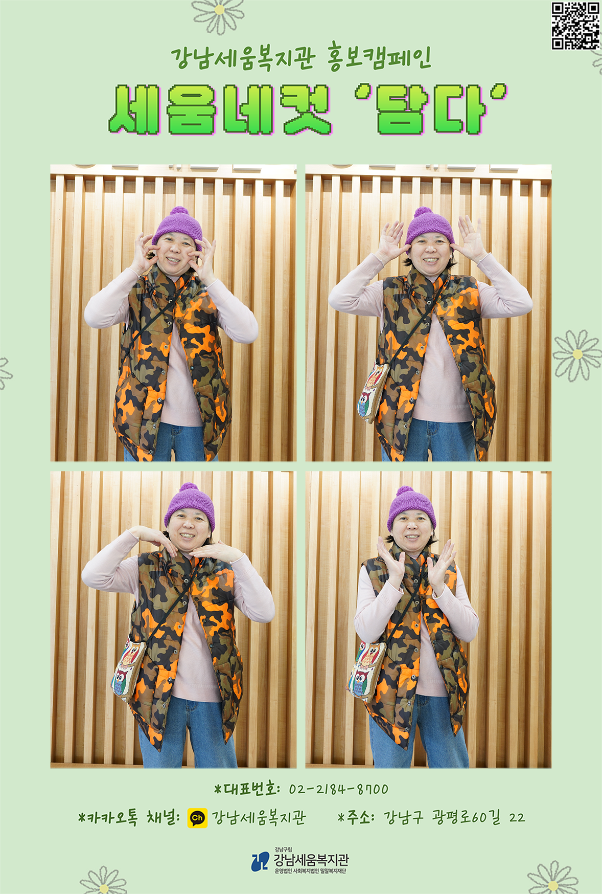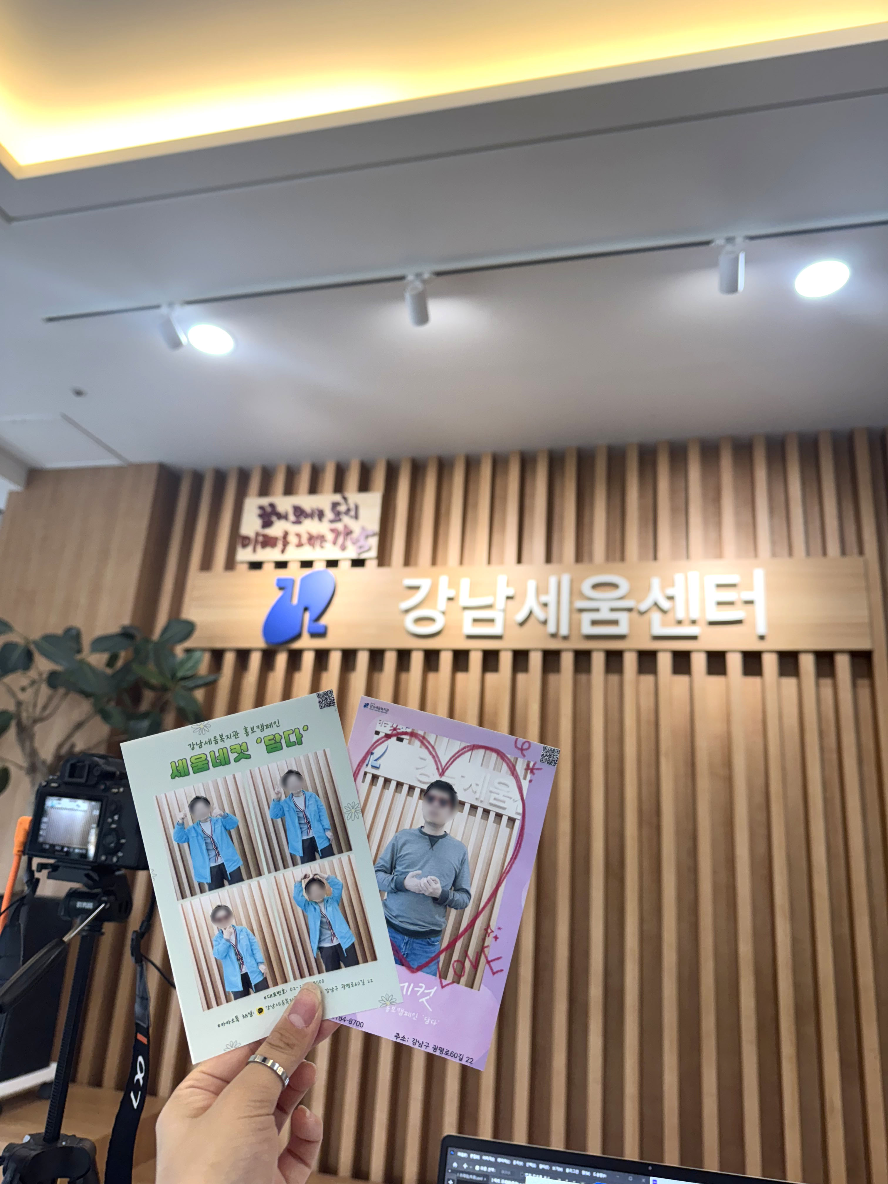 촬영된 사진이 인화되는 동안 카카오톡 채널 홍보를 진행하여 현장에서 신규 추가가 이루어졌고, 캠페인을 계기로 복지관 프로그램에 관심을 가지게하는 소중한 시간이 되었습니다. 앞으로도 강남세움복지관은 지역사회와 소통하며 누구나 편하게 올 수 있는 복지관, 쉽게 정보를 얻을 수 있는 공간으로 자리매김할 수 있도록 다양한 홍보 활동을 펼칠 예정입니다!
