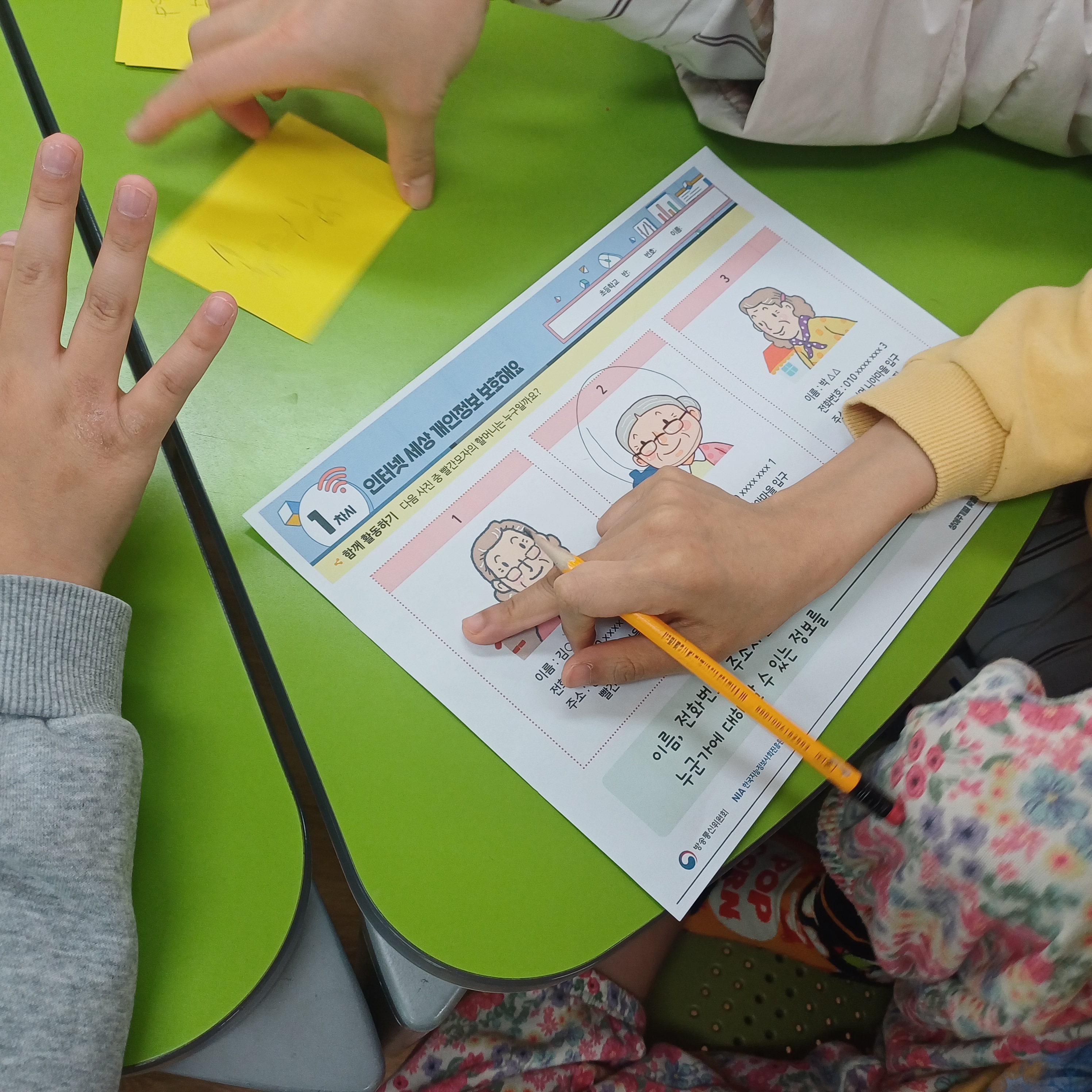 총 9회기로 진행되는 율현초등학교 특수학급 대상 교육은 디지털 환경에서 발생할 수 있는 개인정보 유출 위험을 인지하고, 각종 디지털 범죄로부터 자신을 보호하는 데 필요한 기본적인 리터러시 역량을 강화하는 데 초점을 맞춥니다. 지난 3월 27일, 율현초등학교 특수학급 학생들은 "나의 소중한 정보 지키기"라는 주제로 개인정보의 개념과 중요성을 배우고, 타인에게 공개했을 때 위험할 수 있는 개인정보의 종류에 대해 알아보는 시간을 가졌습니다. 학생들은 다양한 시청각 자료와 게임을 통해 개인정보 보호의 중요성을 쉽고 재미있게 이해했습니다.