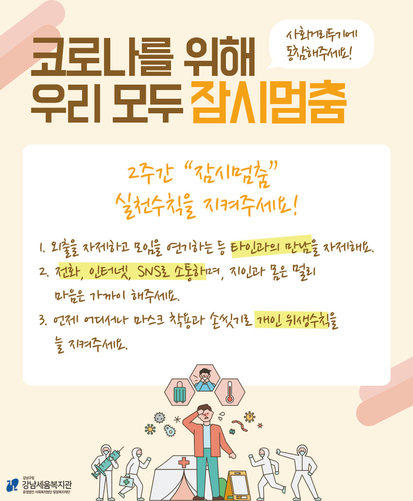 코로나19 확산방지를 위한 2주간의 잠시멈춤 캠페인 안내