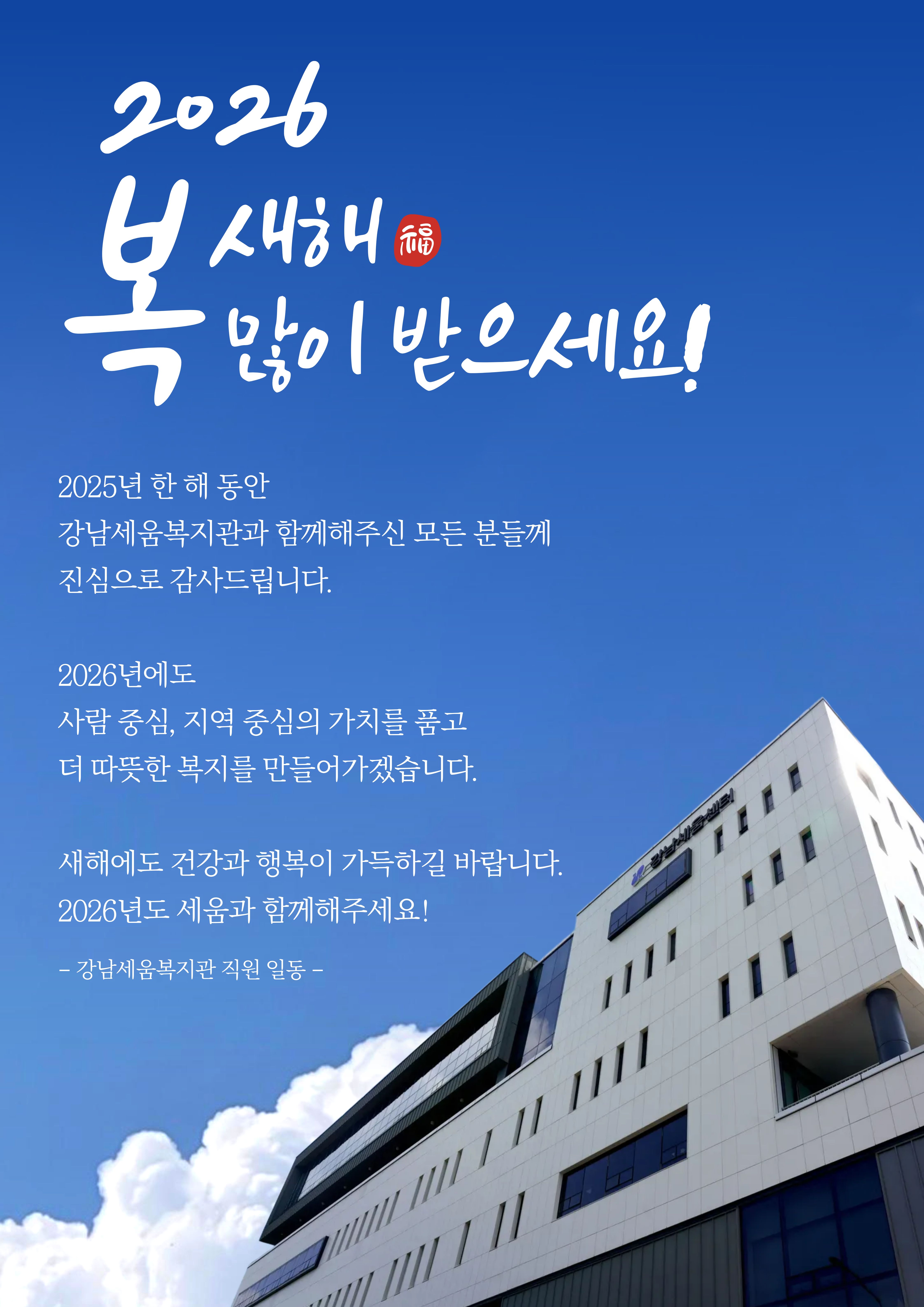 2026년에도 사람 중심, 지역 중심의 가치를 품고 더 따뜻한 복지를 만들어가겠습니다.