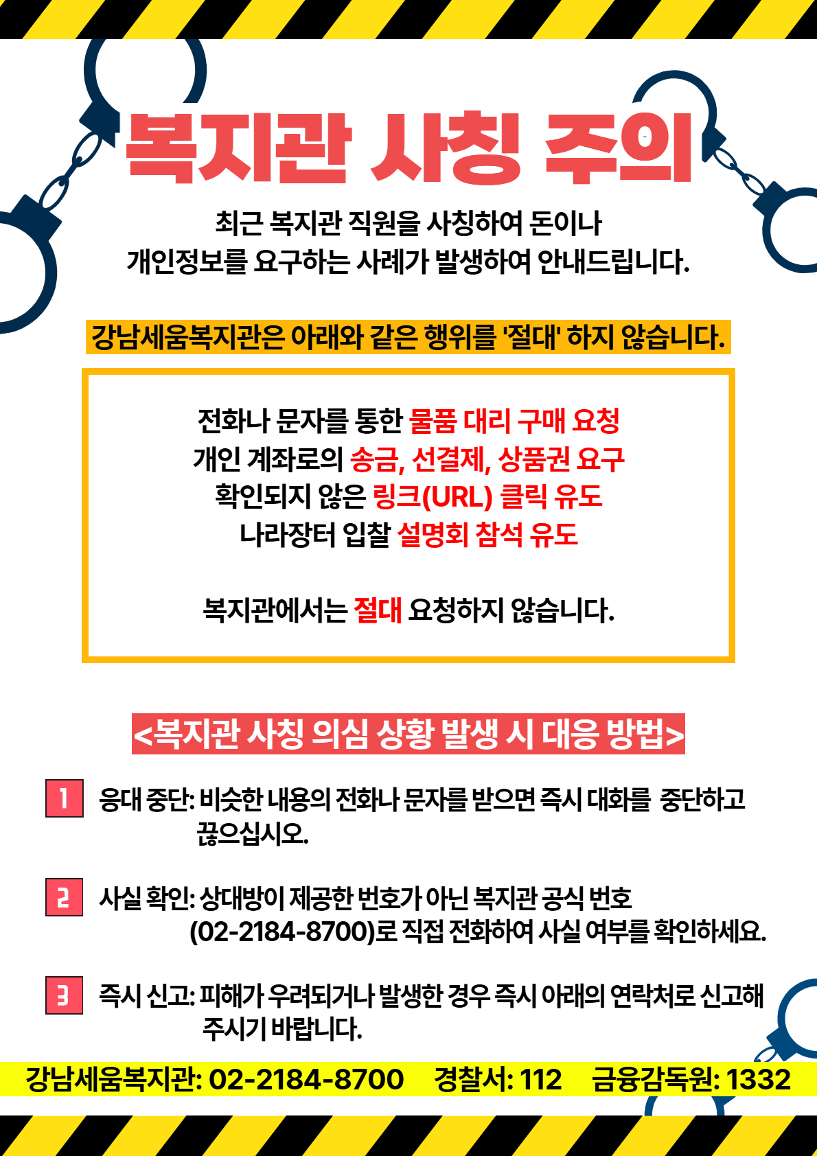 복지관에서는 절대 요청하지 않습니다!