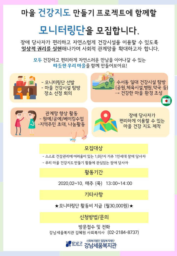 마을 건강지도 만들기 프로젝트에 함께할 모니터링단을 모집합니다.