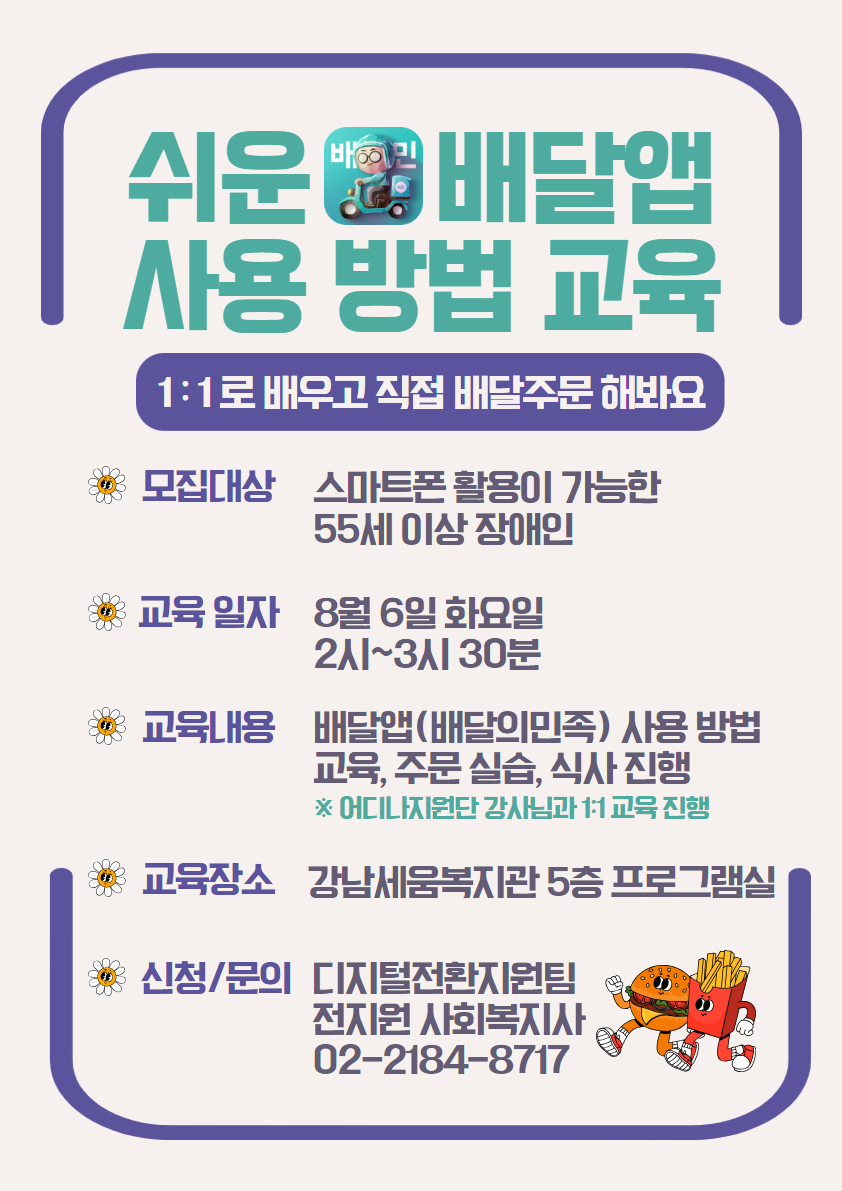 - 사업명: 쉬운배달앱 사용방법 교육