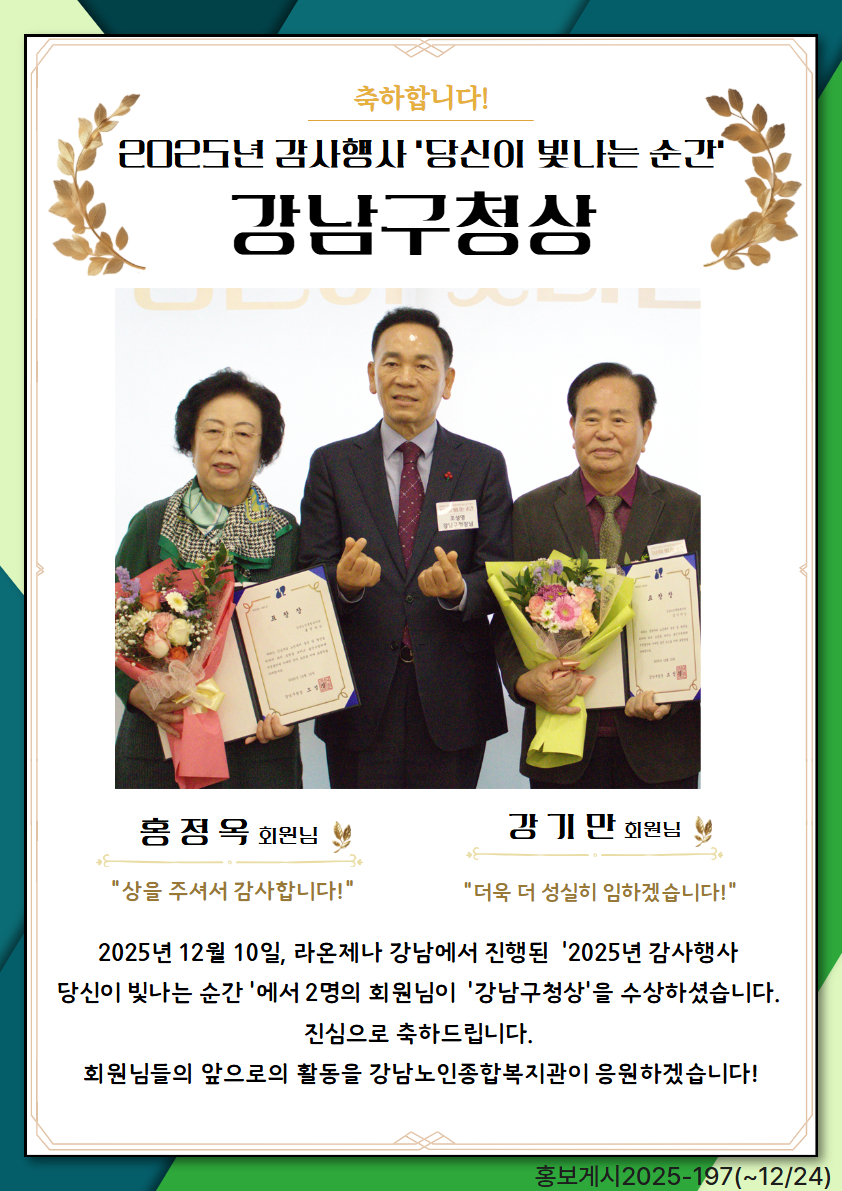 2025년 감사행사 구청장상 수상 [홍정옥, 강기만 회원님]