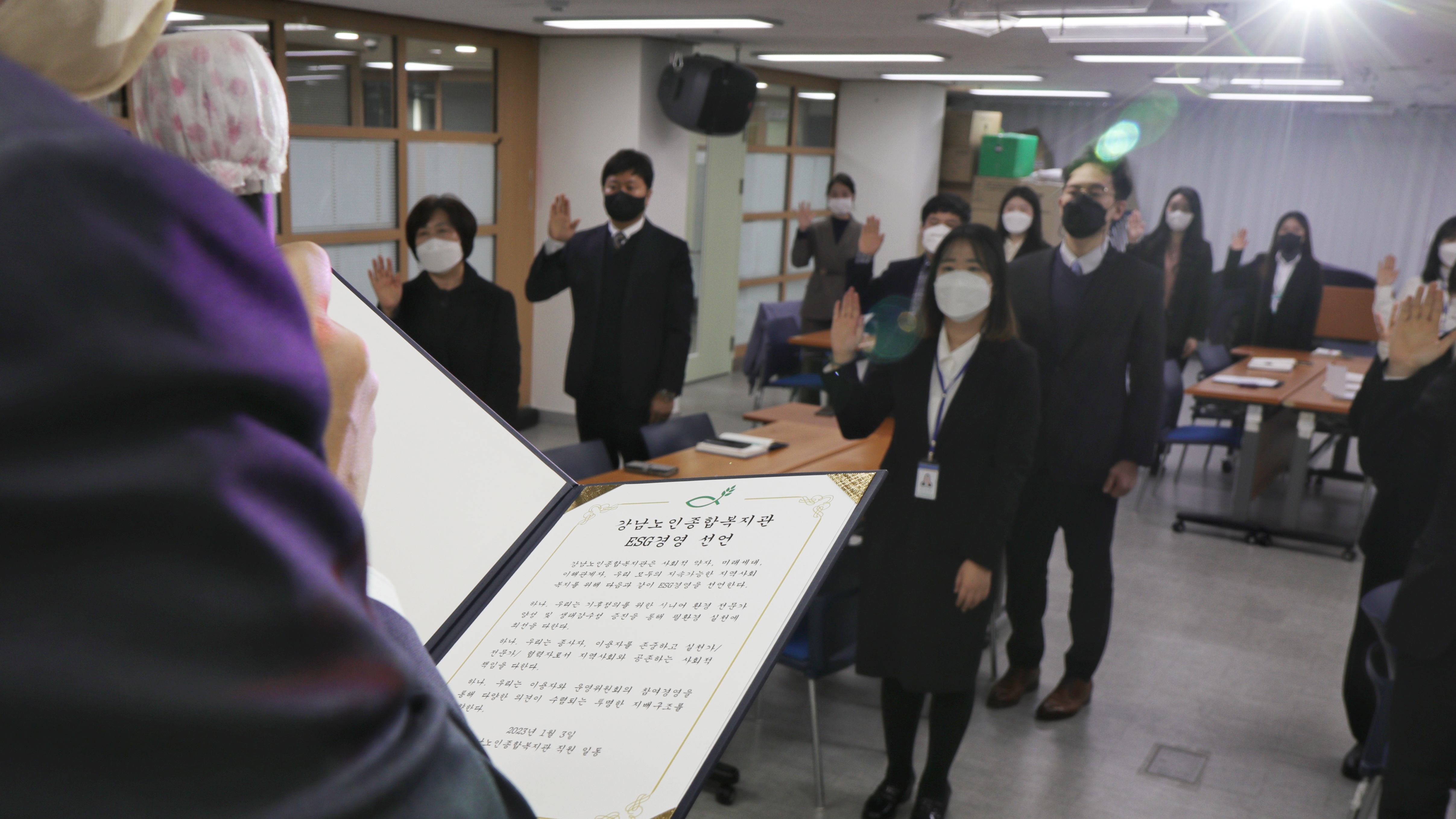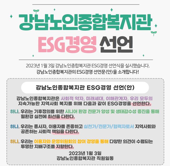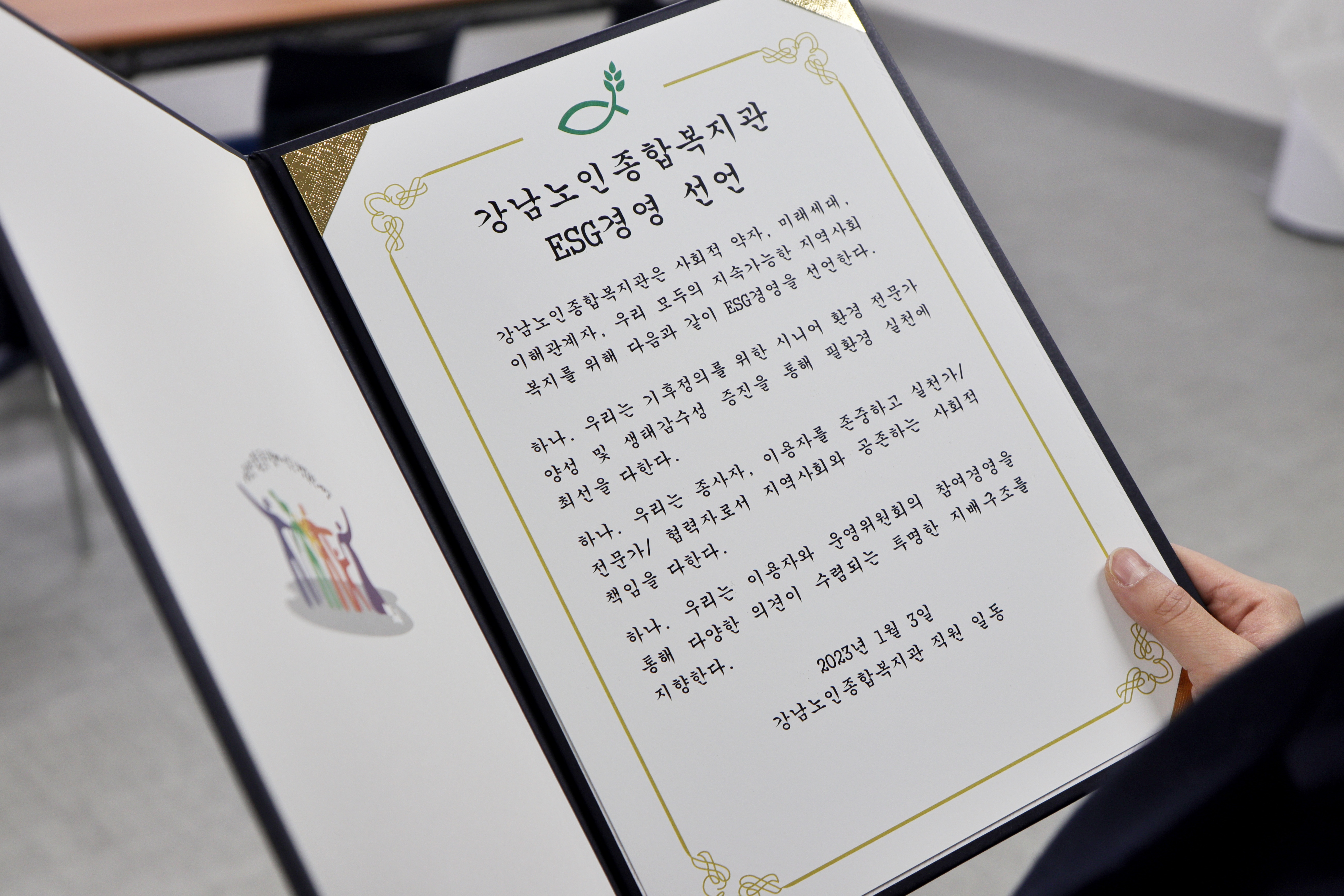 2023년 1월 3일, 시무식을 통해 강남노인종합복지관 esg경영 선언을 실시했습니다.