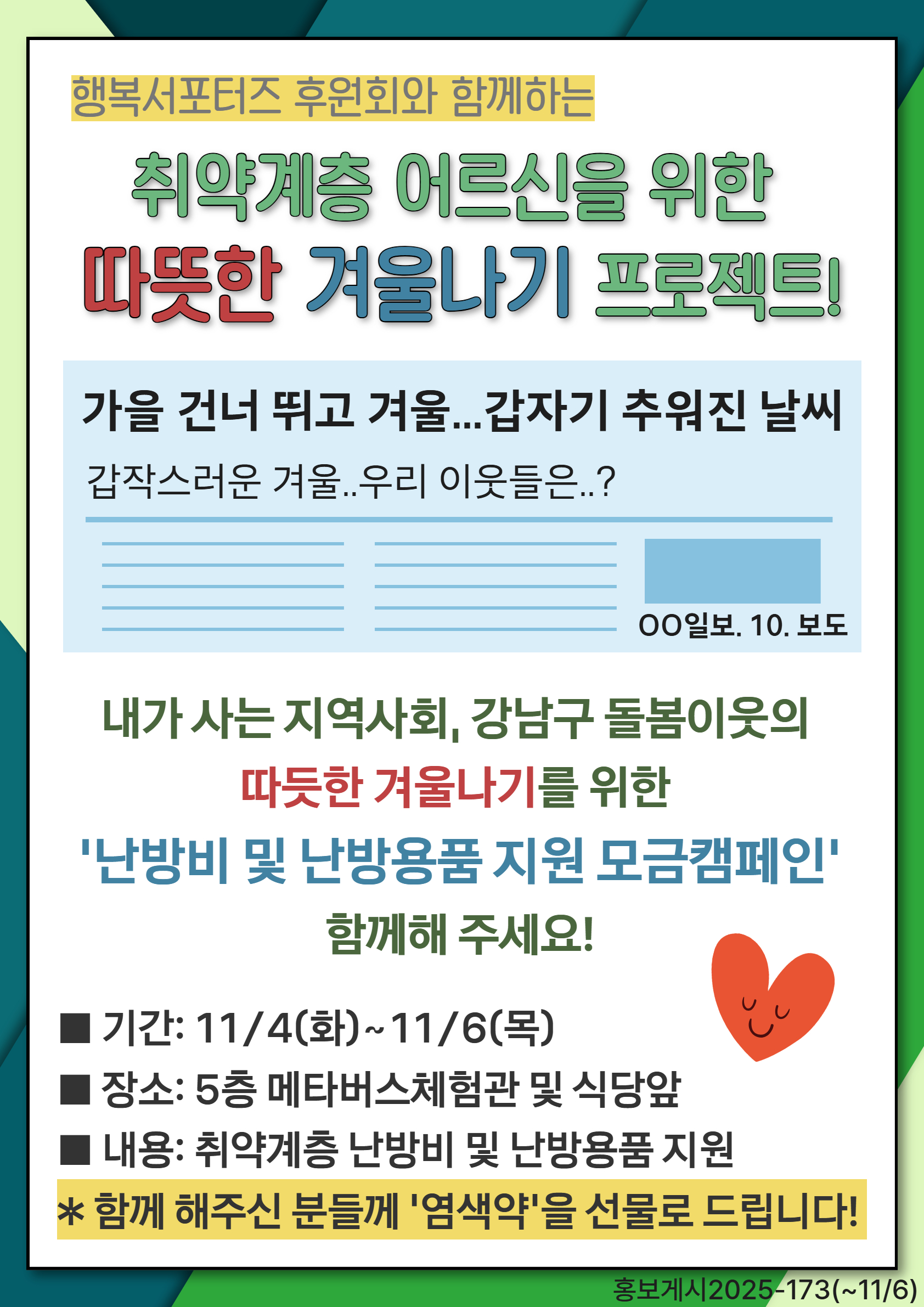 * 내용: 취약계층 난방비 및 난방용품 지원