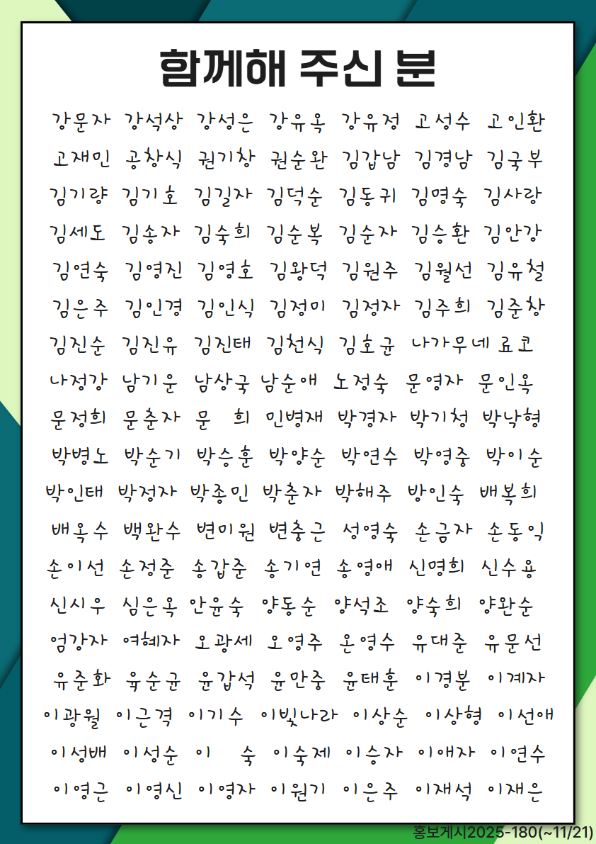| 11/4(화)~11/6(모) 3일간 진행된 돌봄이웃을 위한 난방비 및 난방용품 지원을 위한 모금캠페인에 참여해주신 '185명'의 나눔 으로 '2,677,000원'의 마음이 모였습니다. 전해주신 마음은 우리 주변의 돌봄이웃들의 따뜻한 겨울을 위해 난방비와 난방용품의 형태로 지원됩니다. 함께해주셔서 감사합니다! |