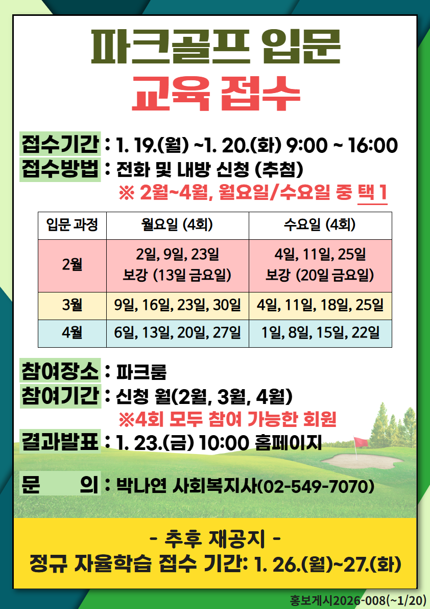 - 접수기간: 1. 19.(월) ~1. 20.(화) 9:00 ~ 16:00