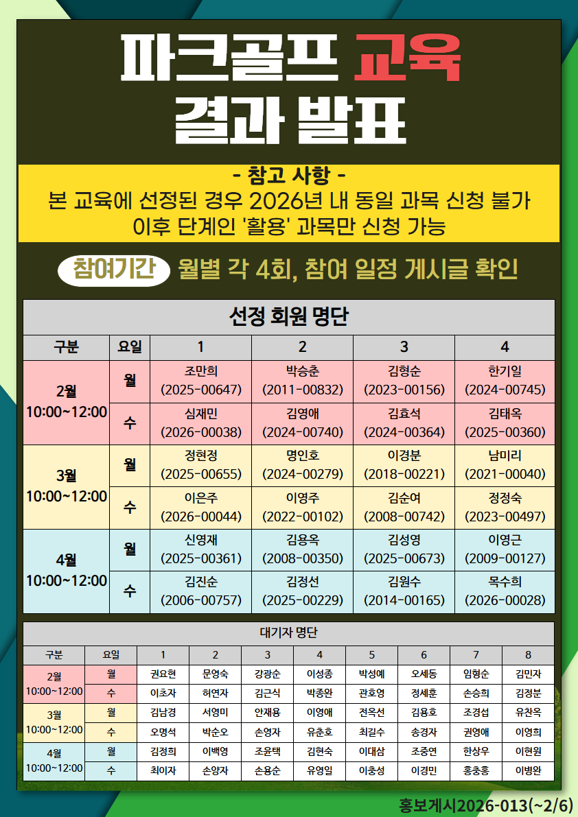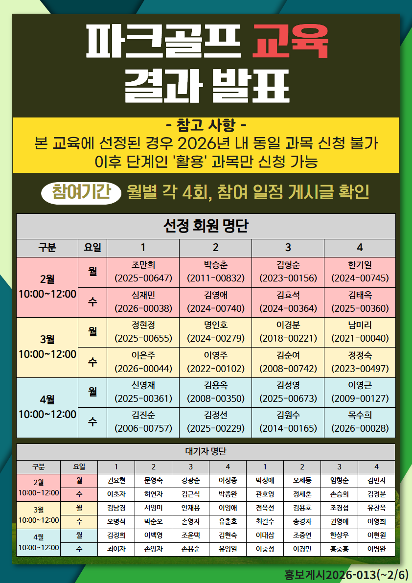 [메타스페이스] 파크골프 교육 결과발표참여 회원님들은 신청한 달의 4회 참여 바랍니다!