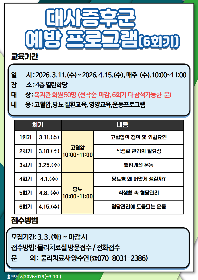[대사증후군 예방프로그램 접수 안내]