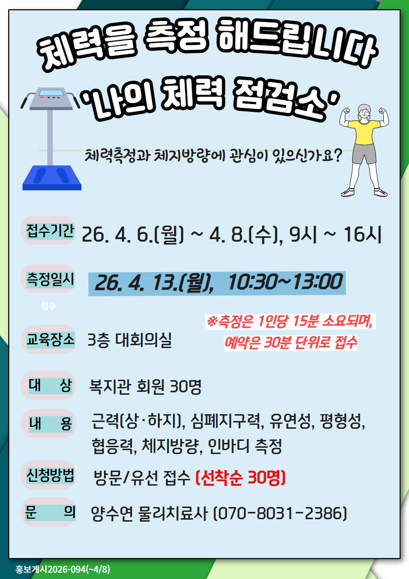 [건강증진] 체력측정 프로그램 나의 체력 점검소 참여자 모집 안내