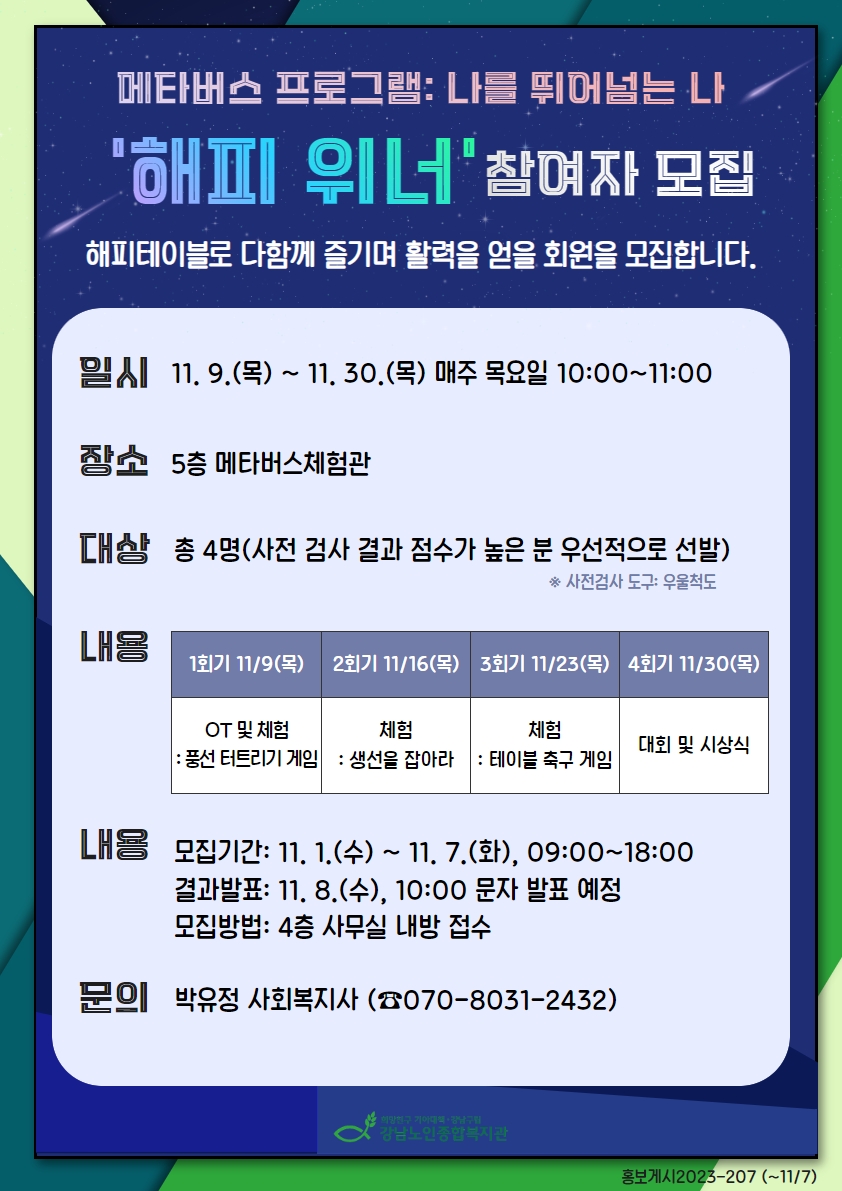 [강남메타버스체험관] 11월 메타버스 프로그램 참여자 모집