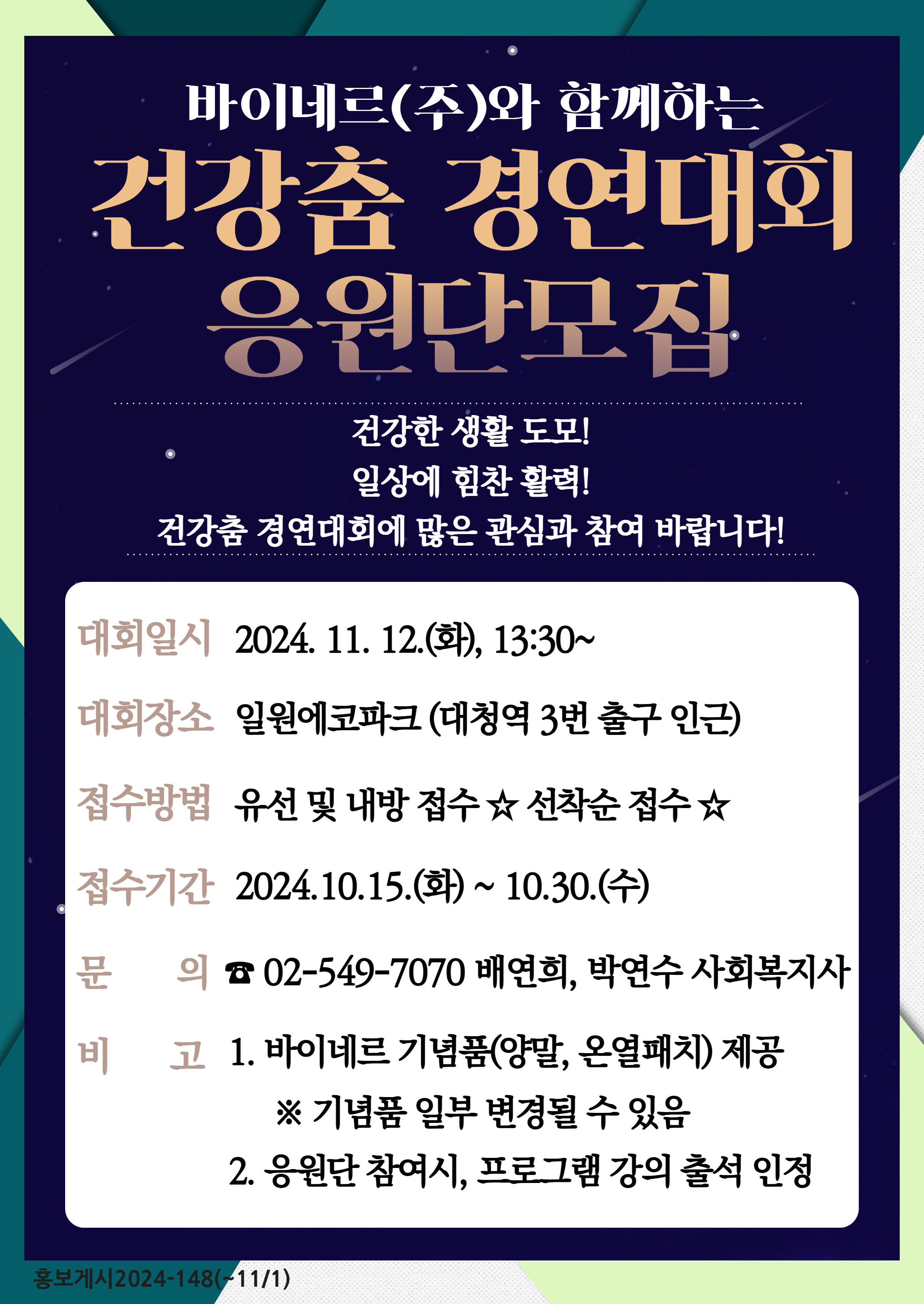 ![[강남구노인복지기관협의회] 바이네르(주)와 함께하는 건강춤 경연대회 응원단모집 전자점자다운로드](/assets/images/common/braille_btn_down.png)