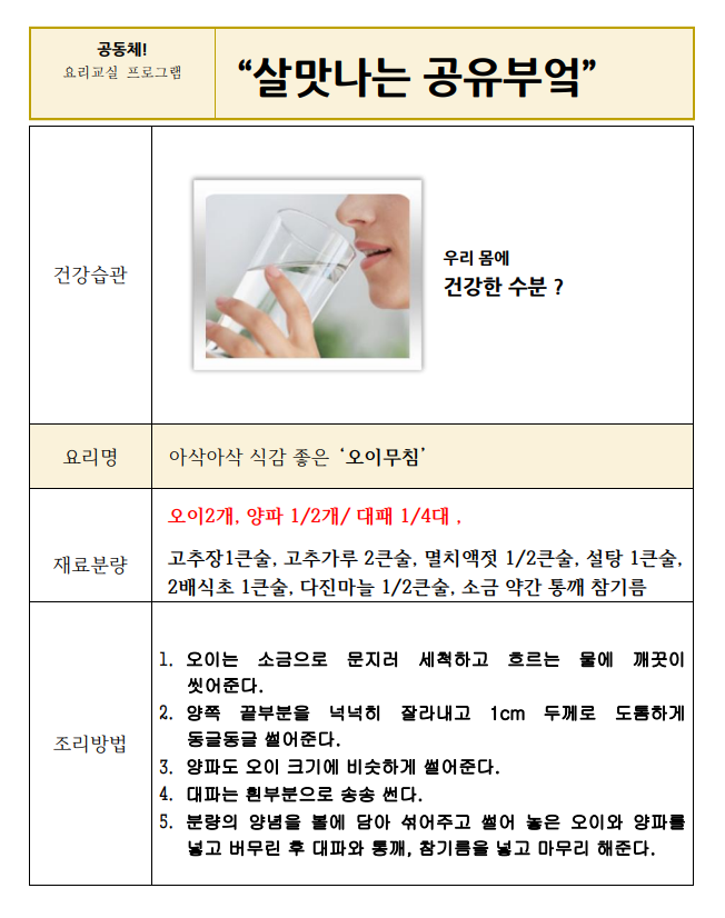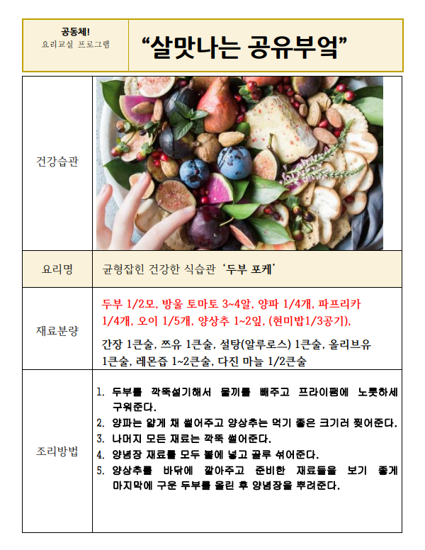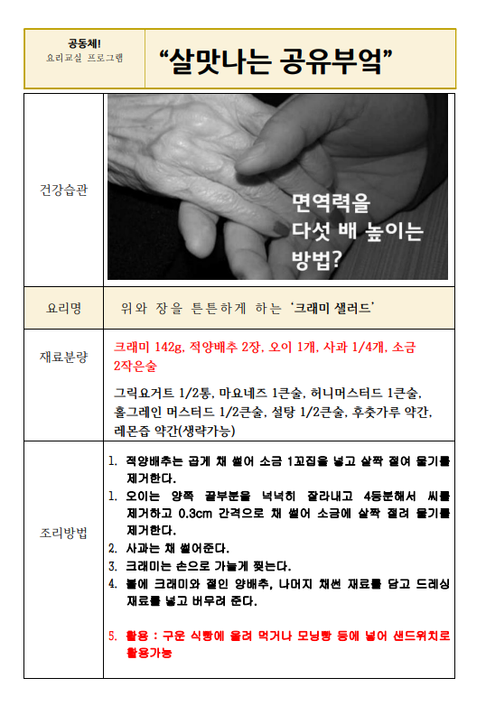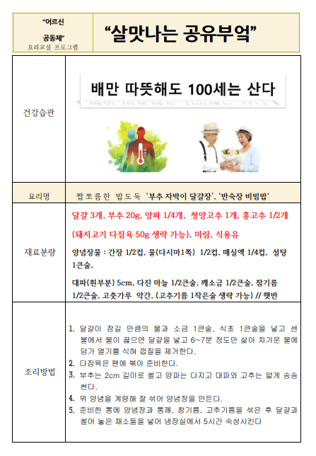 래미안도곡카운티 경로당 회원들이 직접 만들었던 맛있고 건강한 요리 레시피를 공유합니다~!!