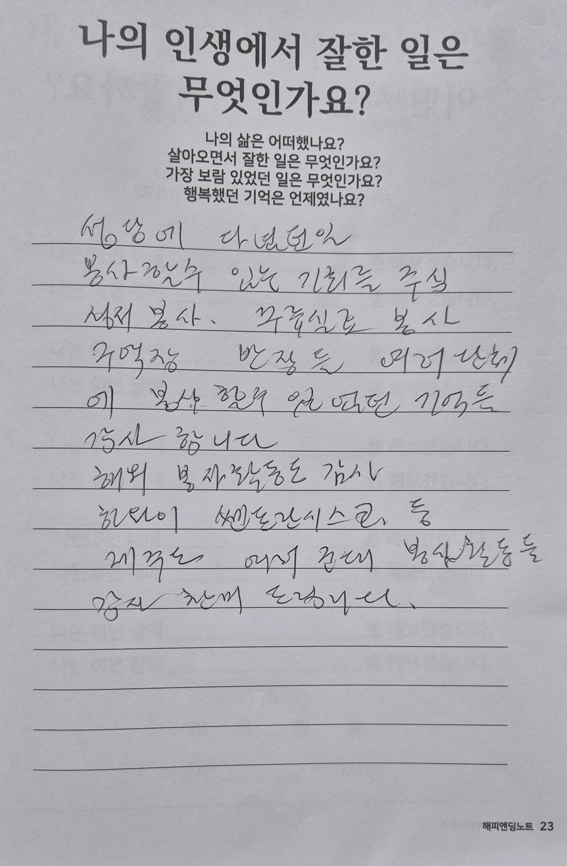 2기수 우수 참여자였던 방수희 회원의 해피엔딩 노트(자서전)를 공유드리고자 합니다.
