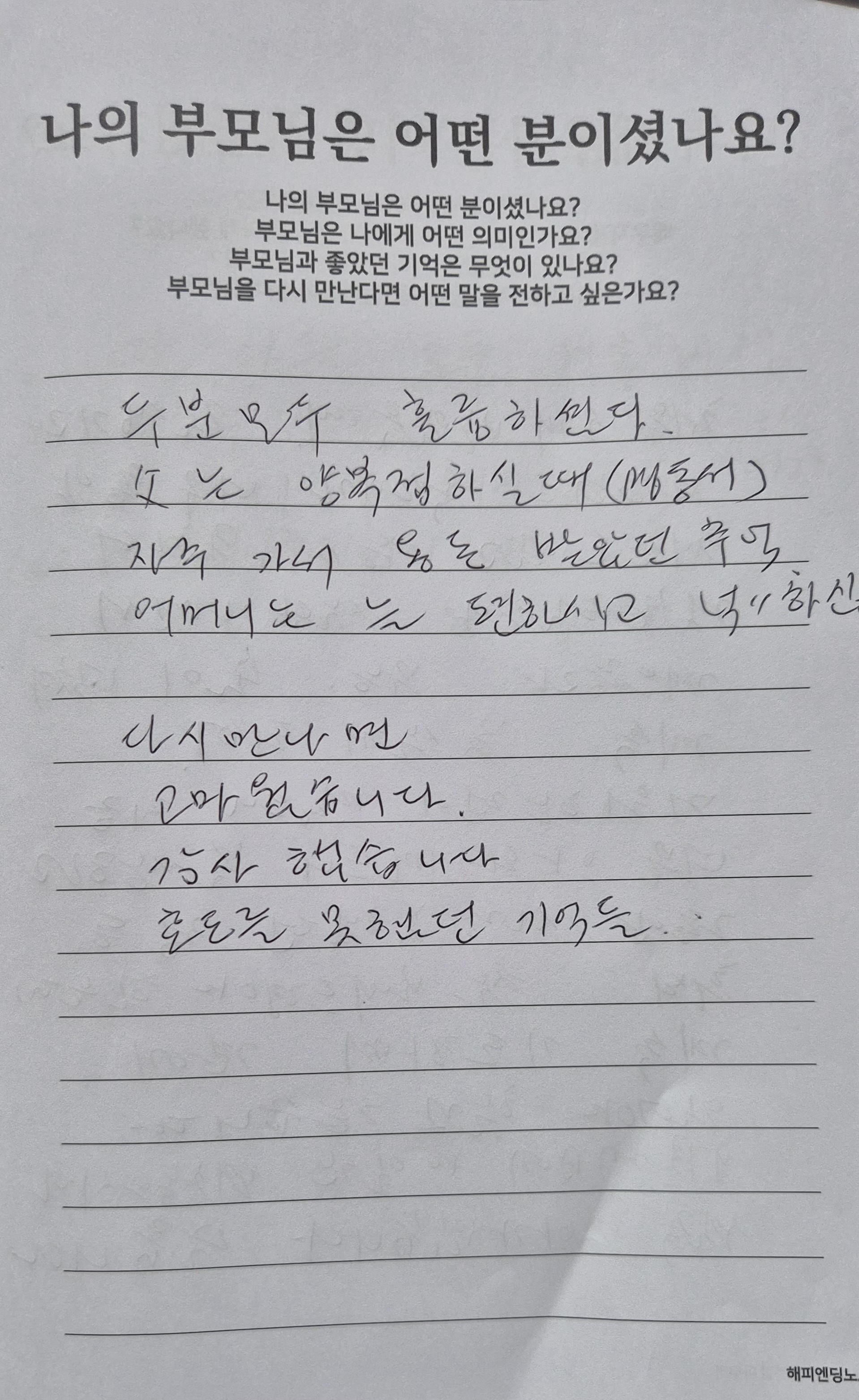 ![[시니어종합상담사업] 강남구 평생학습특성화 지원사업 웰다잉 프로그램 ‘아름다운 이별’ 2기수 우수회원 해피엔딩 노트 공유 전자점자다운로드](/assets/images/common/braille_btn_down.png)