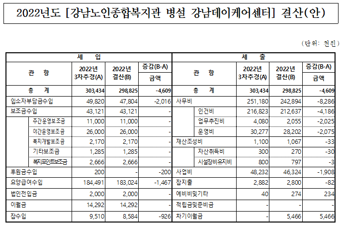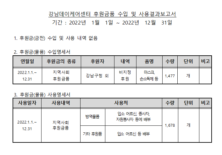 [강남데이케어센터] 2022년 결산 및 후원품 결산 공고