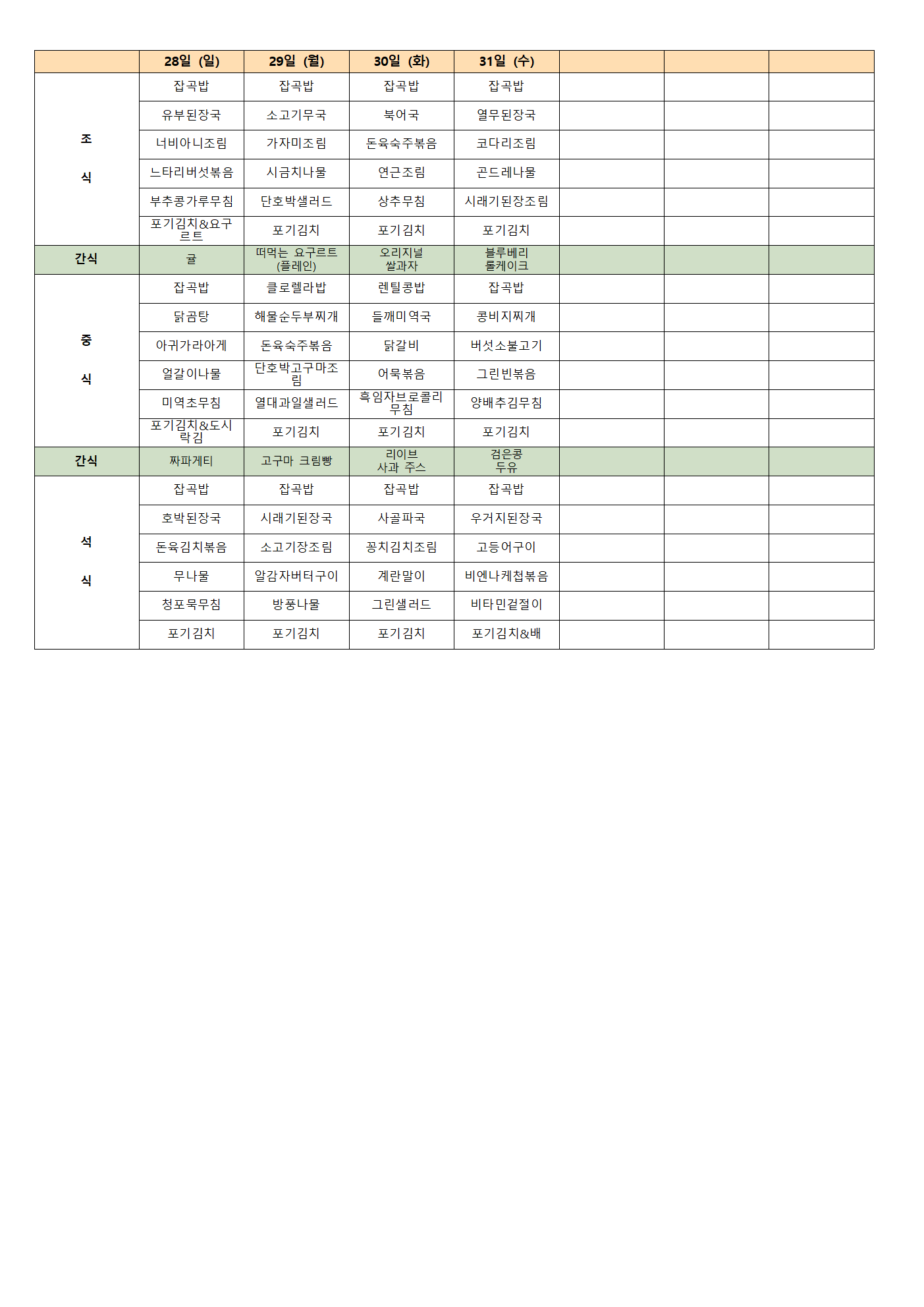 [강남데이케어센터] 2025년 12월 식단 및 간식표