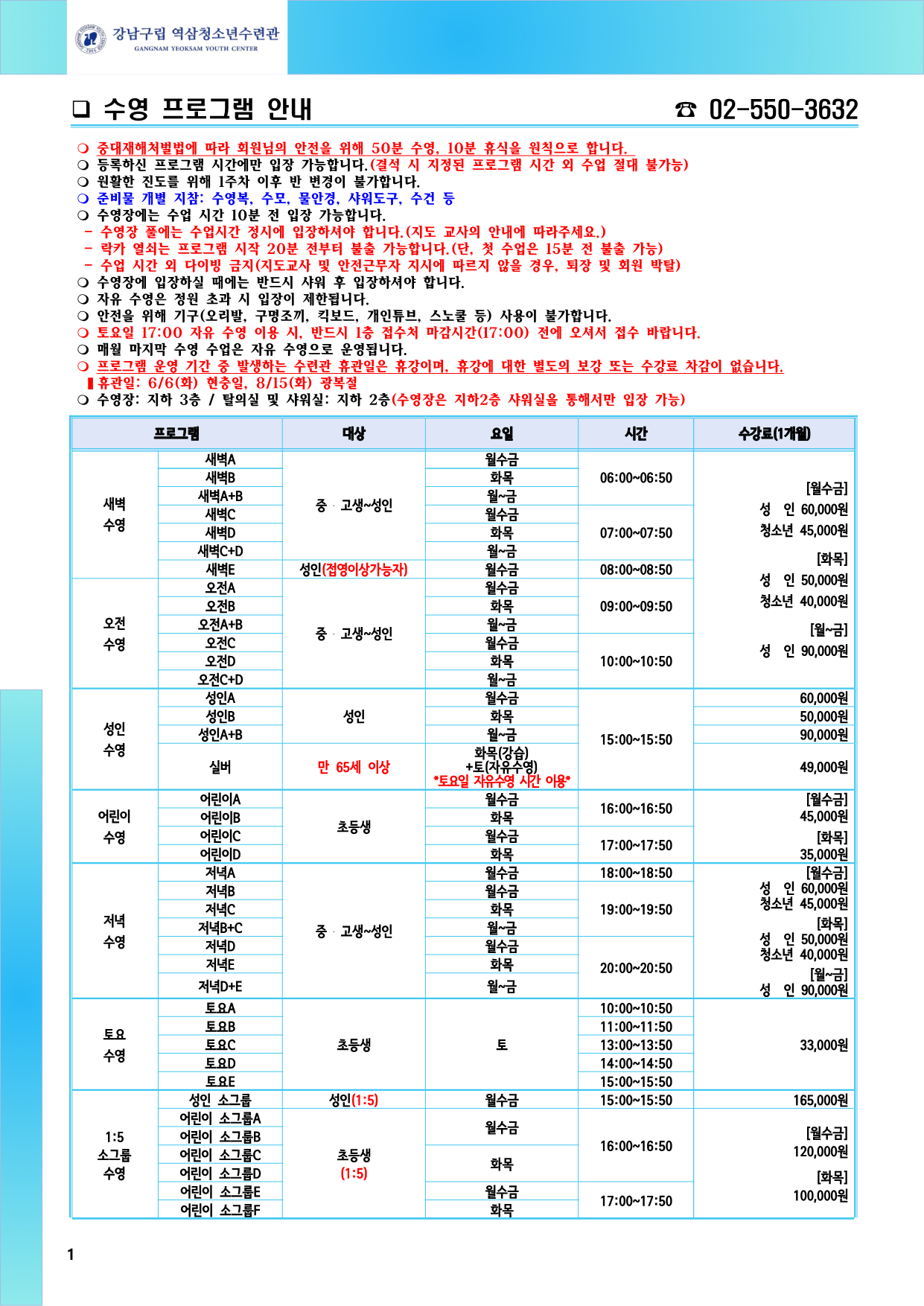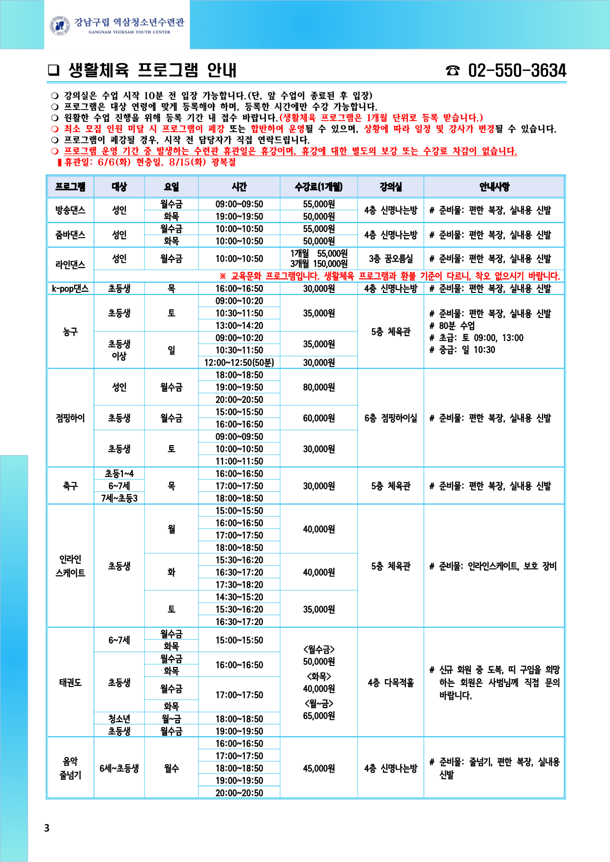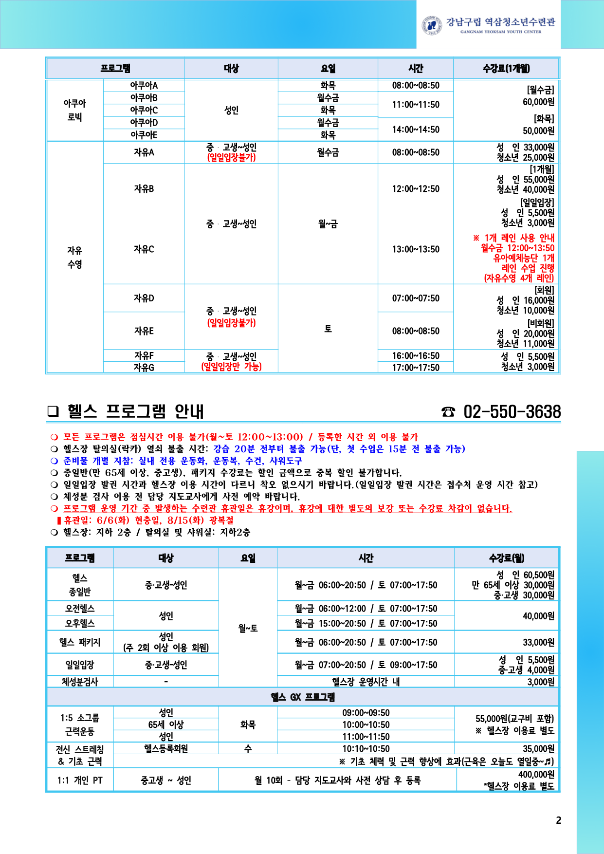 2023년 여름학기(6~8월) 프로그램 안내(수영, 헬스, 생활체육, 교육문화)