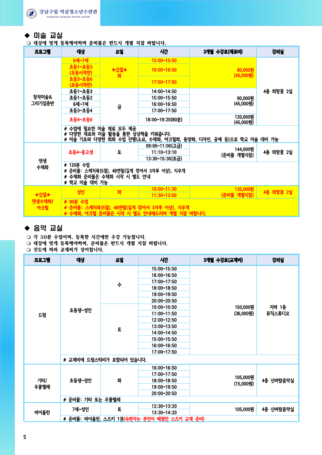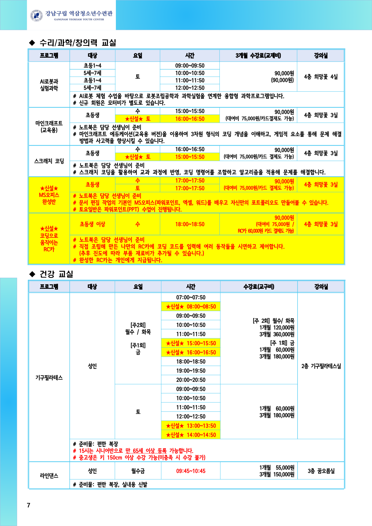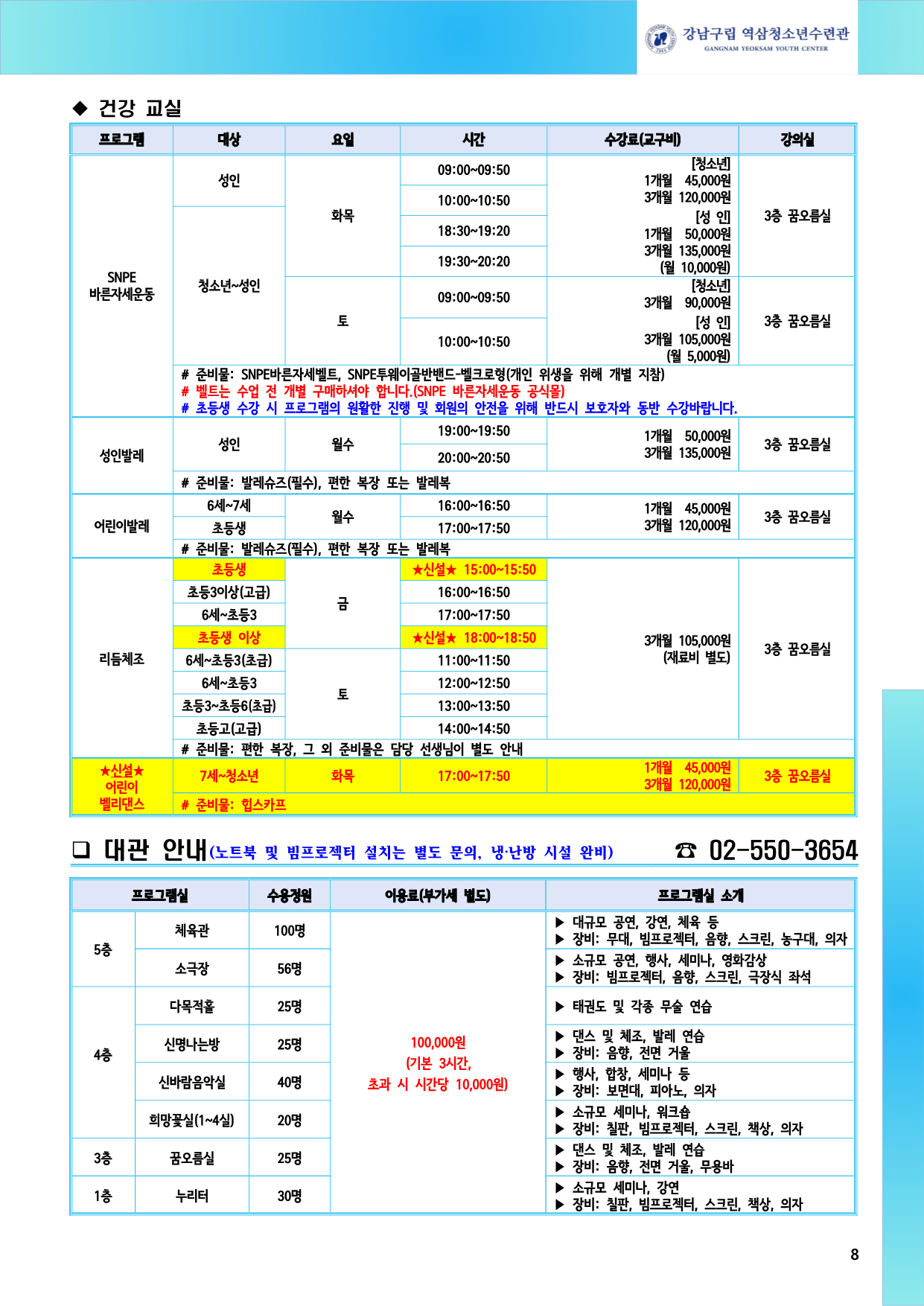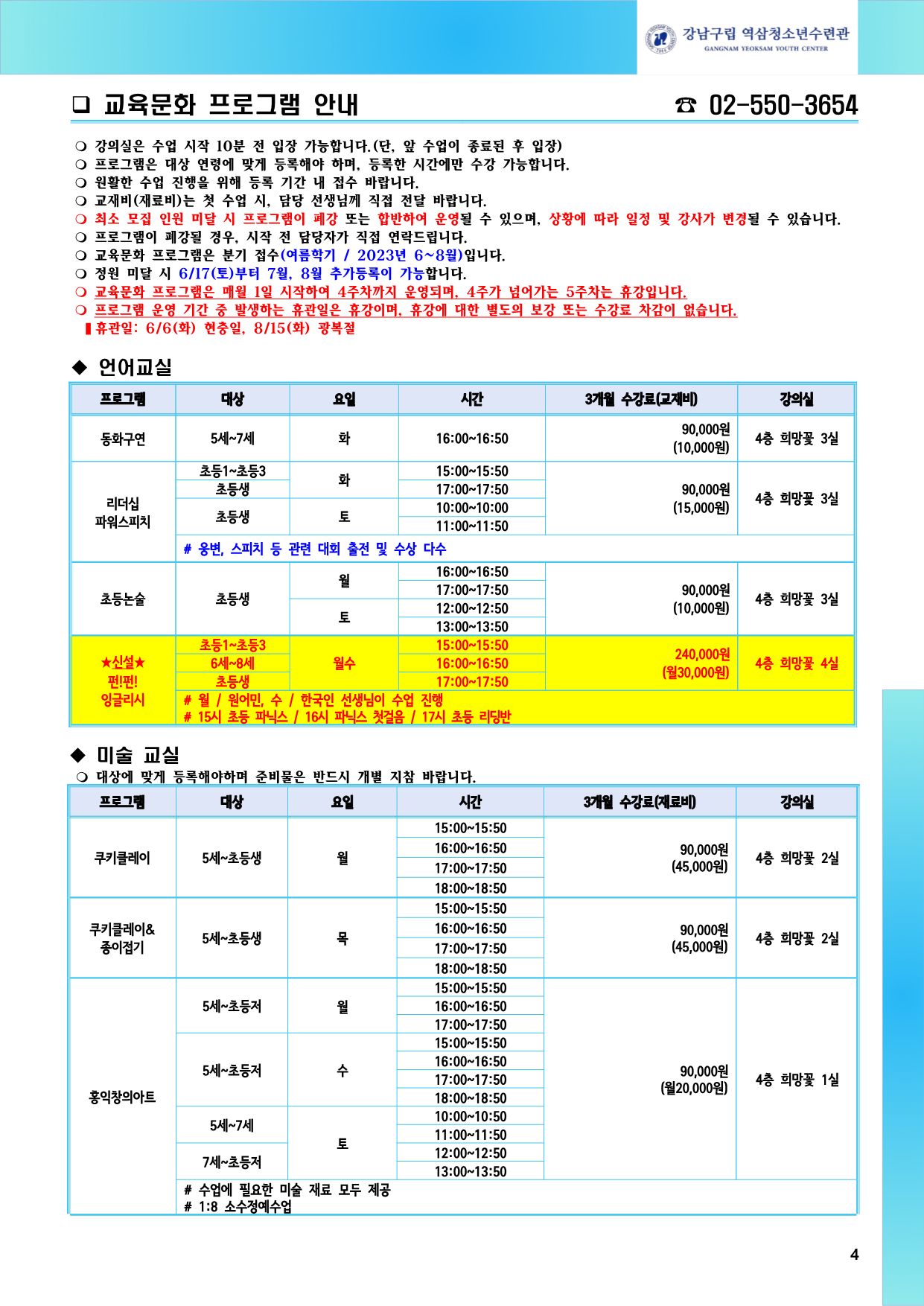 2023년 여름학기(6~8월) 프로그램 안내(수영, 헬스, 생활체육, 교육문화)