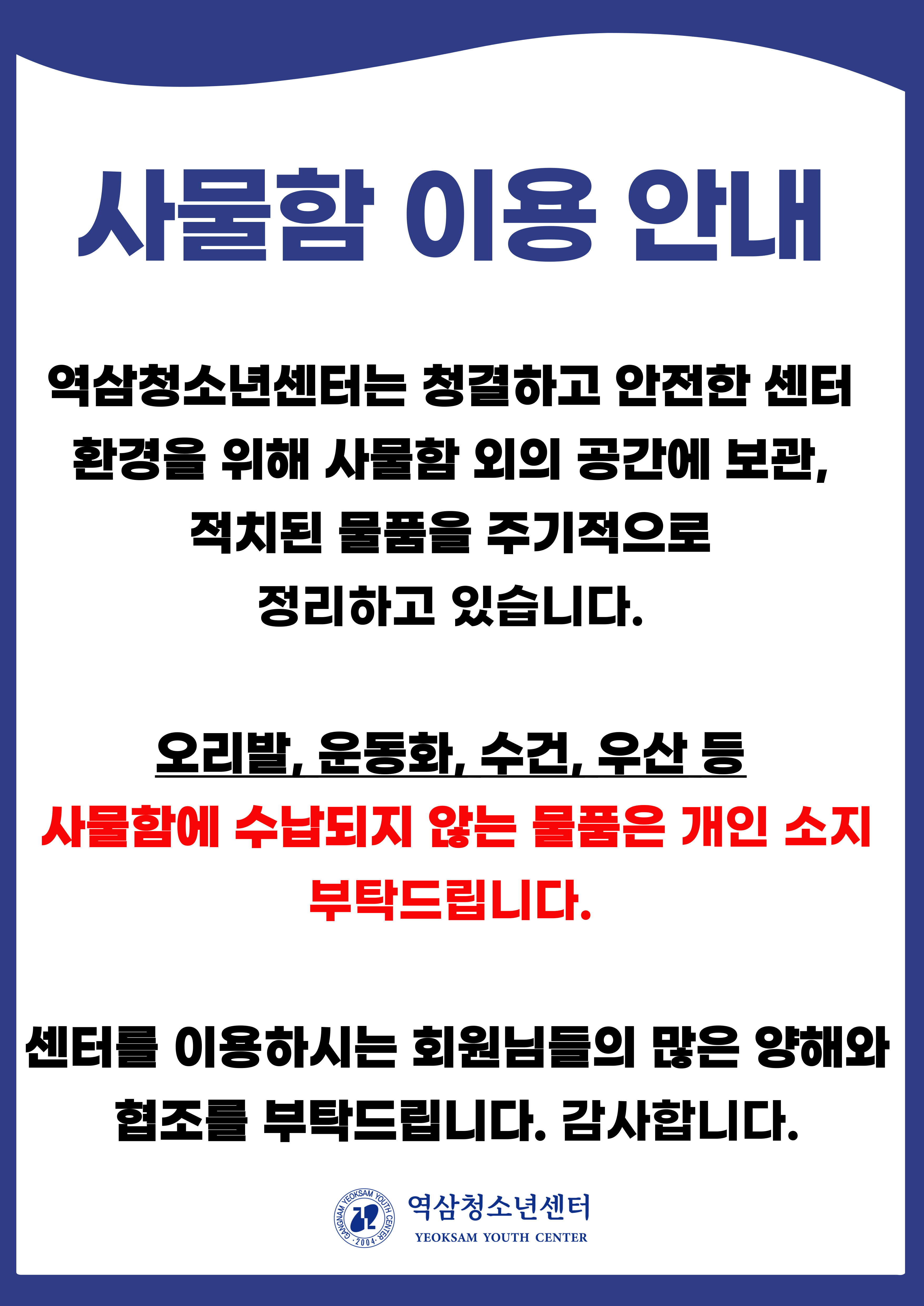 역삼청소년센터 사물함 이용안내