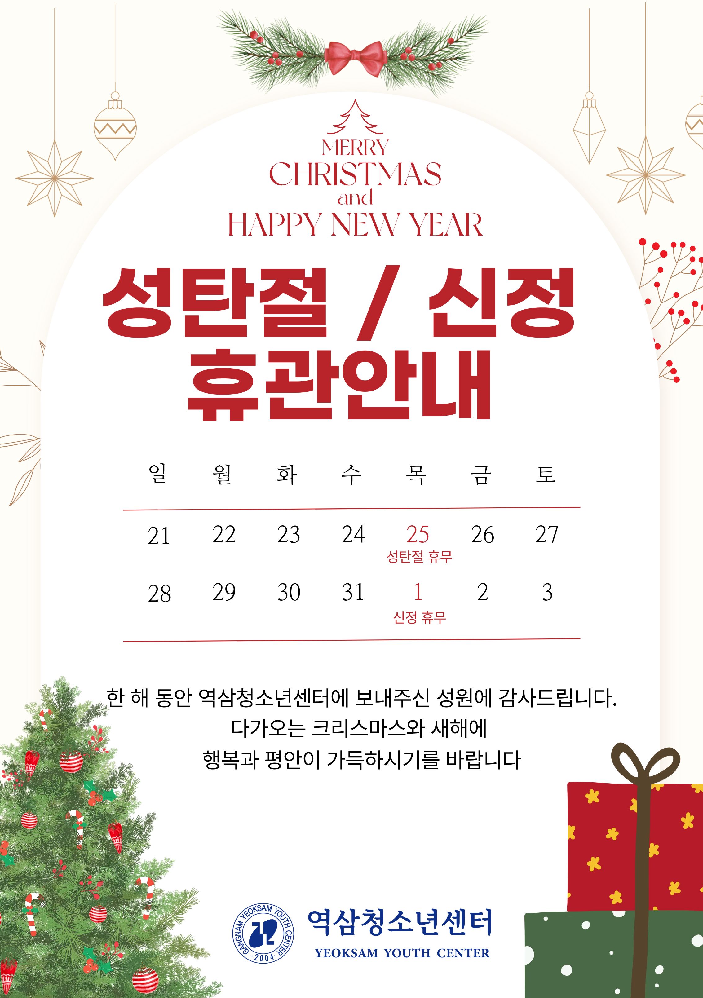 역삼청소년센터 성탄절 및 신정 휴관안내