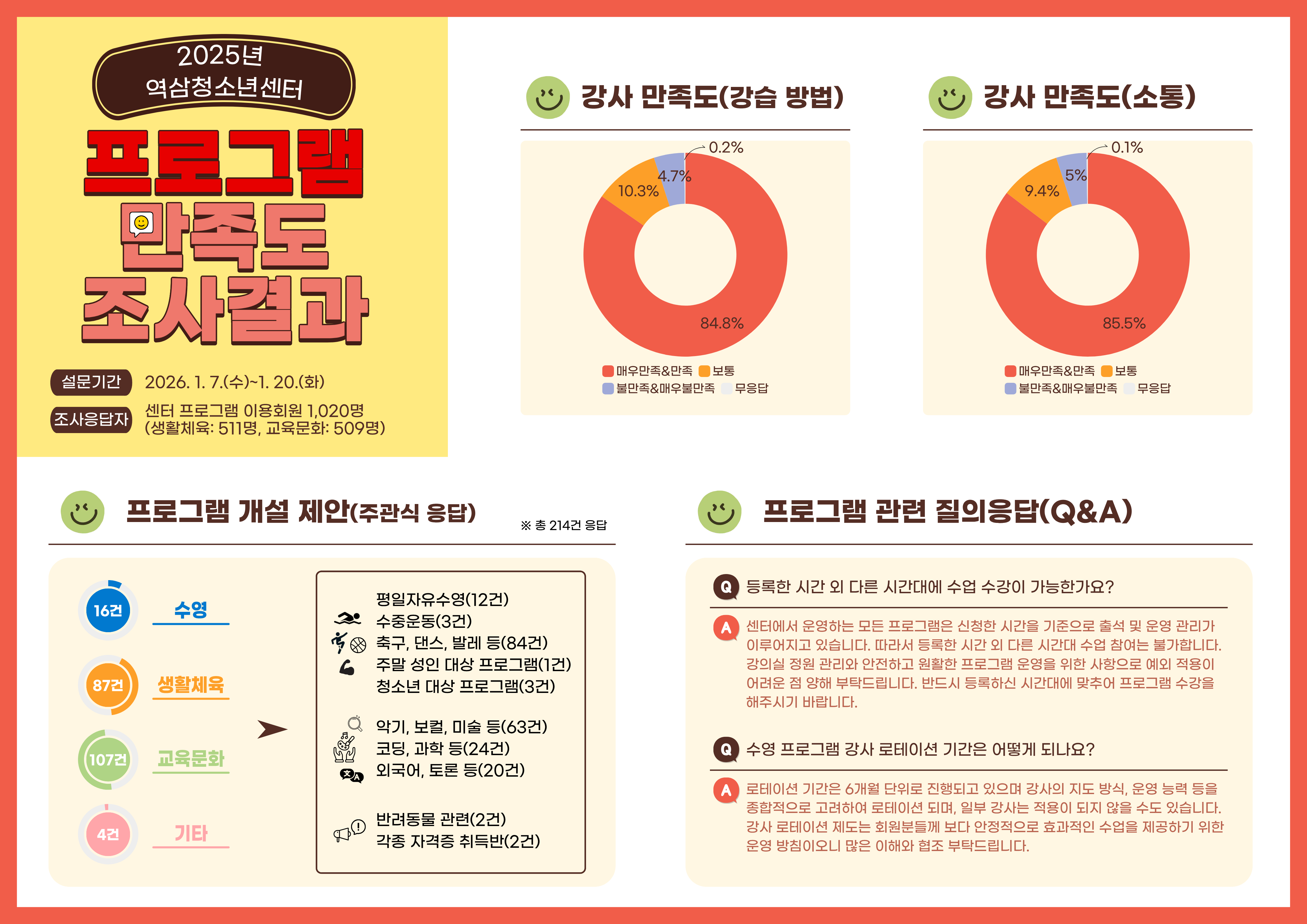 2025년 역삼청소년센터 프로그램 만족도 조사 결과