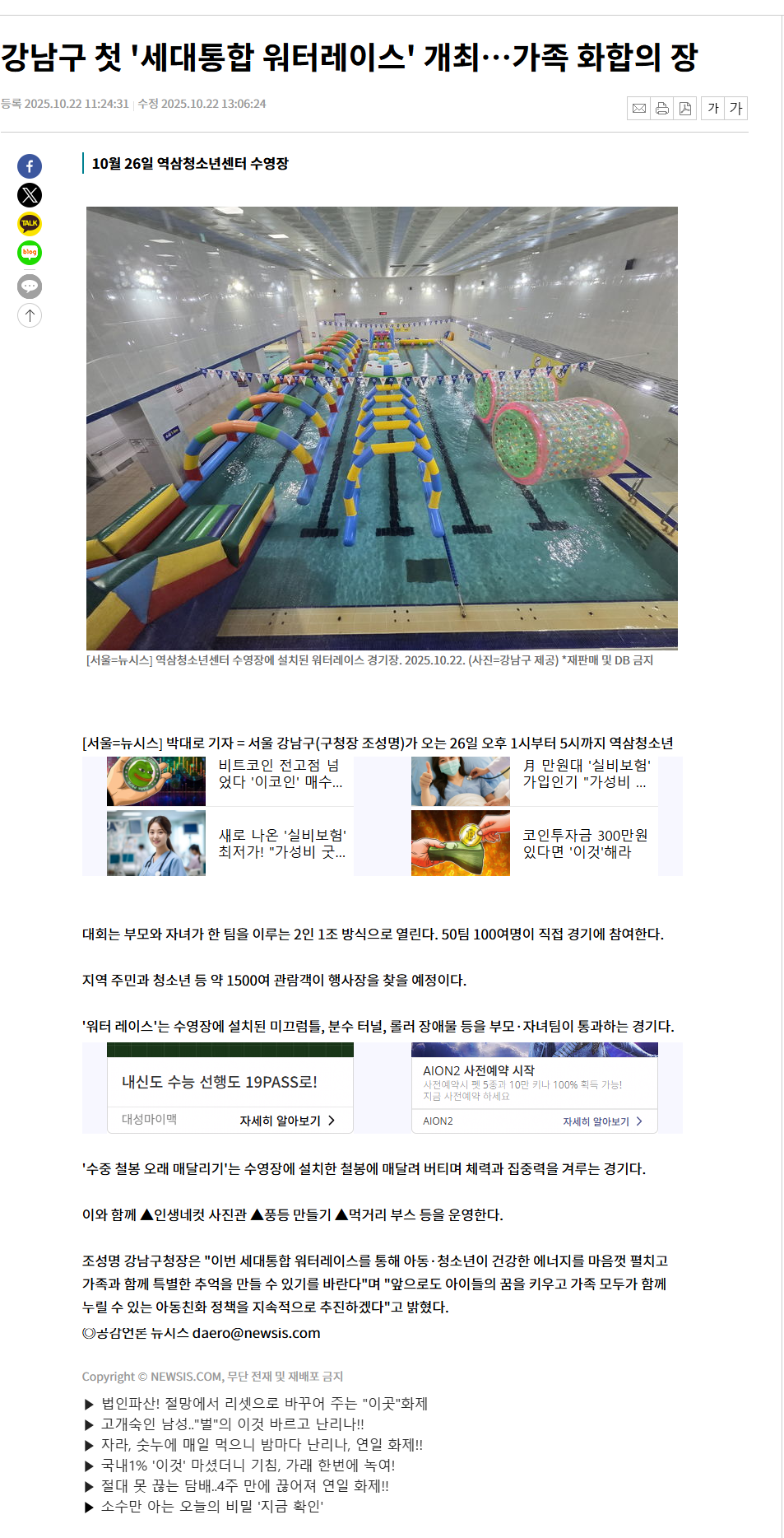 강남구 첫 세대통합 워터레이스 개최, 가족 화합의 장