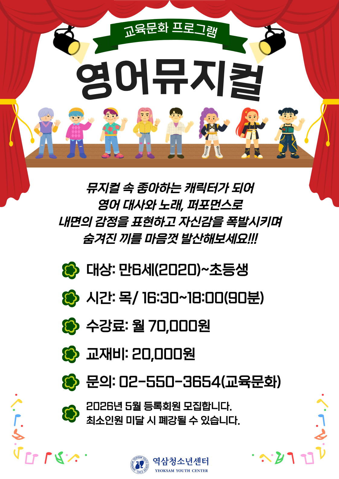 | 만5세~만6세 | 화 | 15:00~15:50 | 3개월 90,000원 (45,000원) |