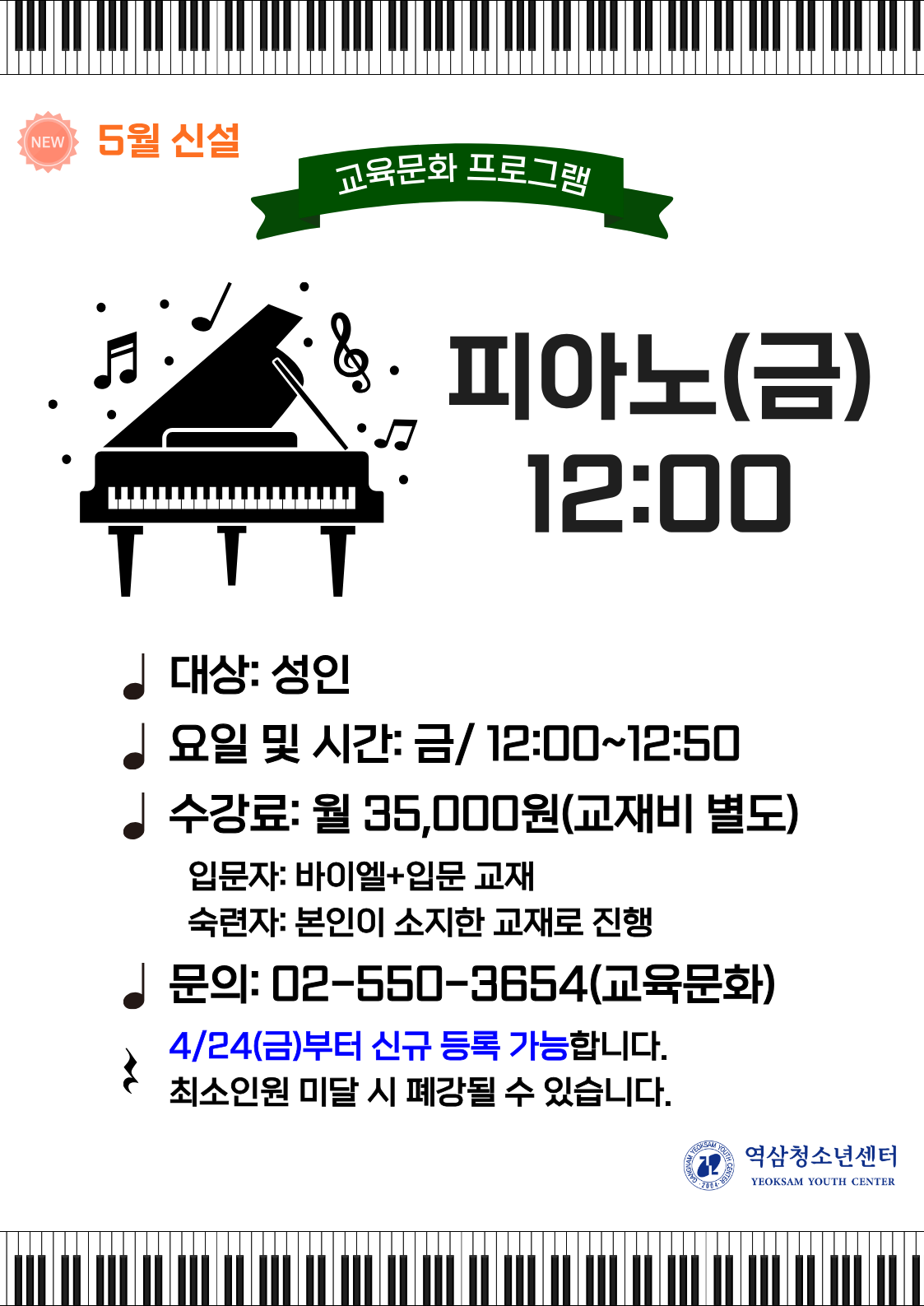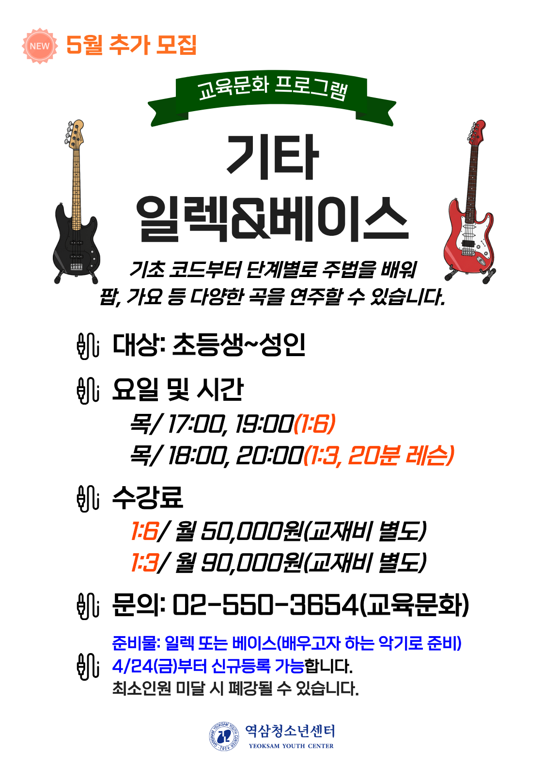 | 초등3~중고생 | 토 | 09:00~11:00 | 3개월 144,000원 | 4층 희망꽃 2실 |